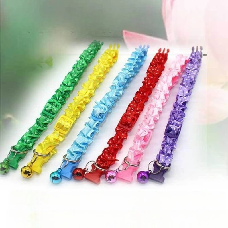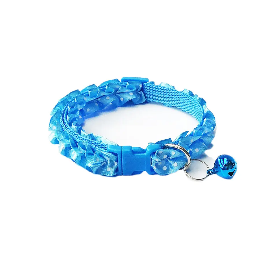Lindo collar de perro con puntos de encaje y campana: collar ajustable para gatitos y cachorros