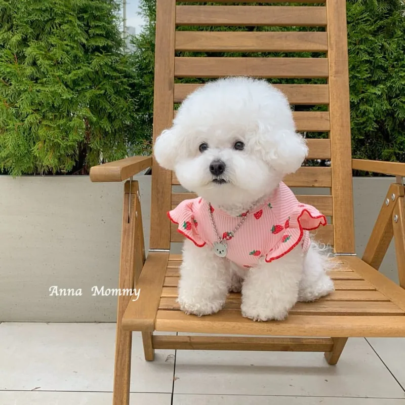 Cute Lace Pet Dog Clothing Breathable Flying Sleeve Strawberry Puppy Vest Teddy Bichon Schnauzer poodle For Small Dog Clothes