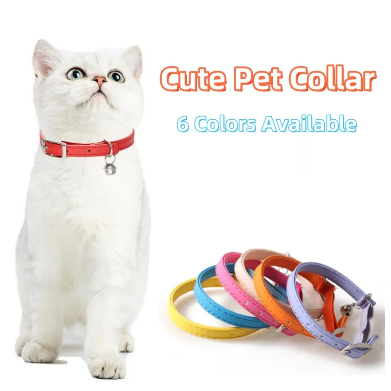 Cute Pet Cat Collar, Elastic Webbing Cat Collar Adjustable PU Color Small Collar with Bells for Puppies and Cats