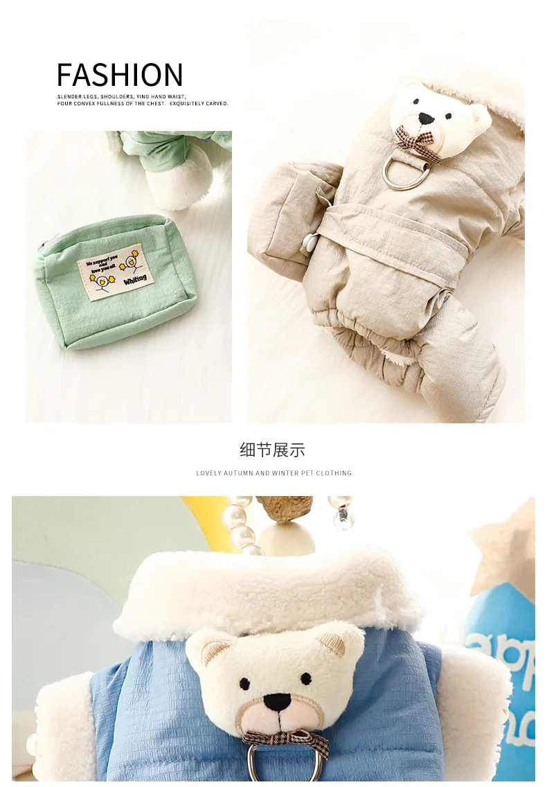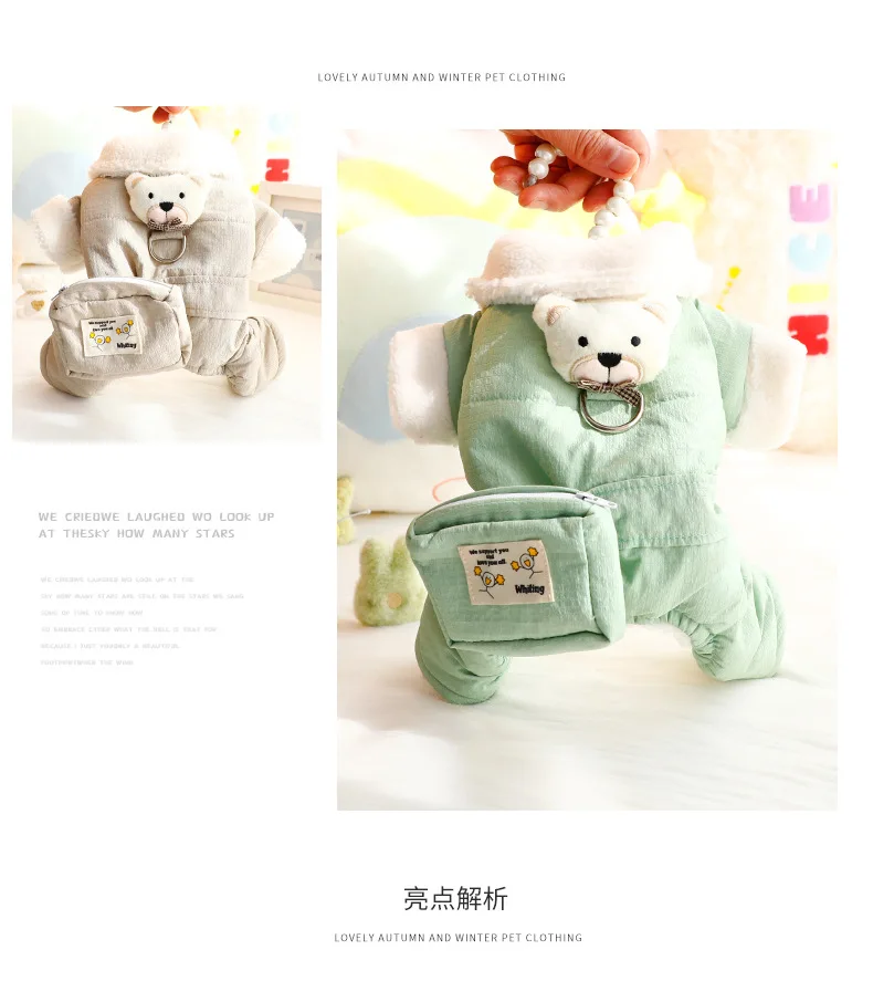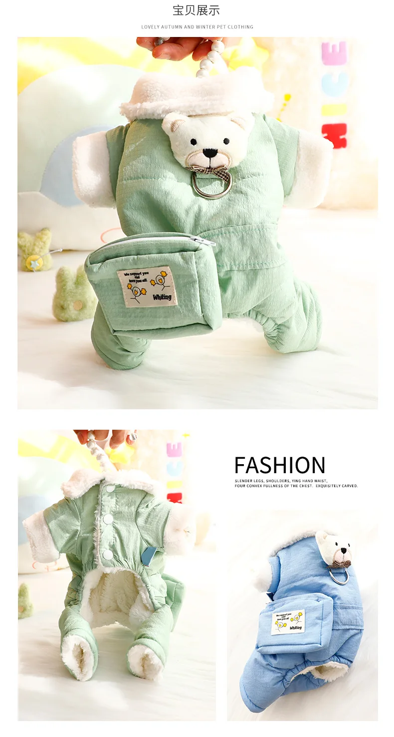 Cute Warmer Dog Clothes Pet Four Legged Cotton Coat Winter Outfit Schnauzer Down Jacket For Small Dog