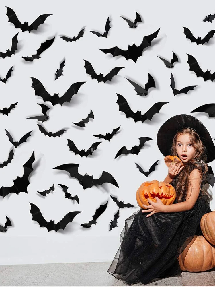 Decoración 3D de murciélago de PVC negro para fiesta de Halloween, pegatina de pared para Bar, habitación, accesorios de decoración de miedo
