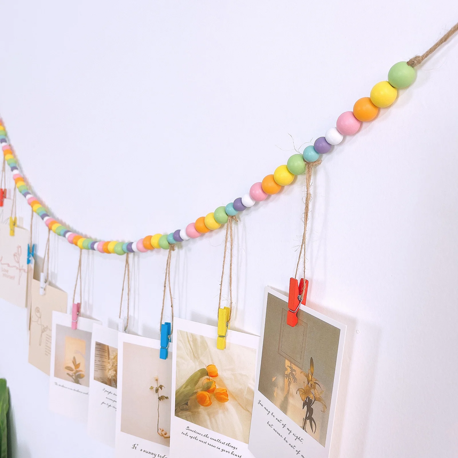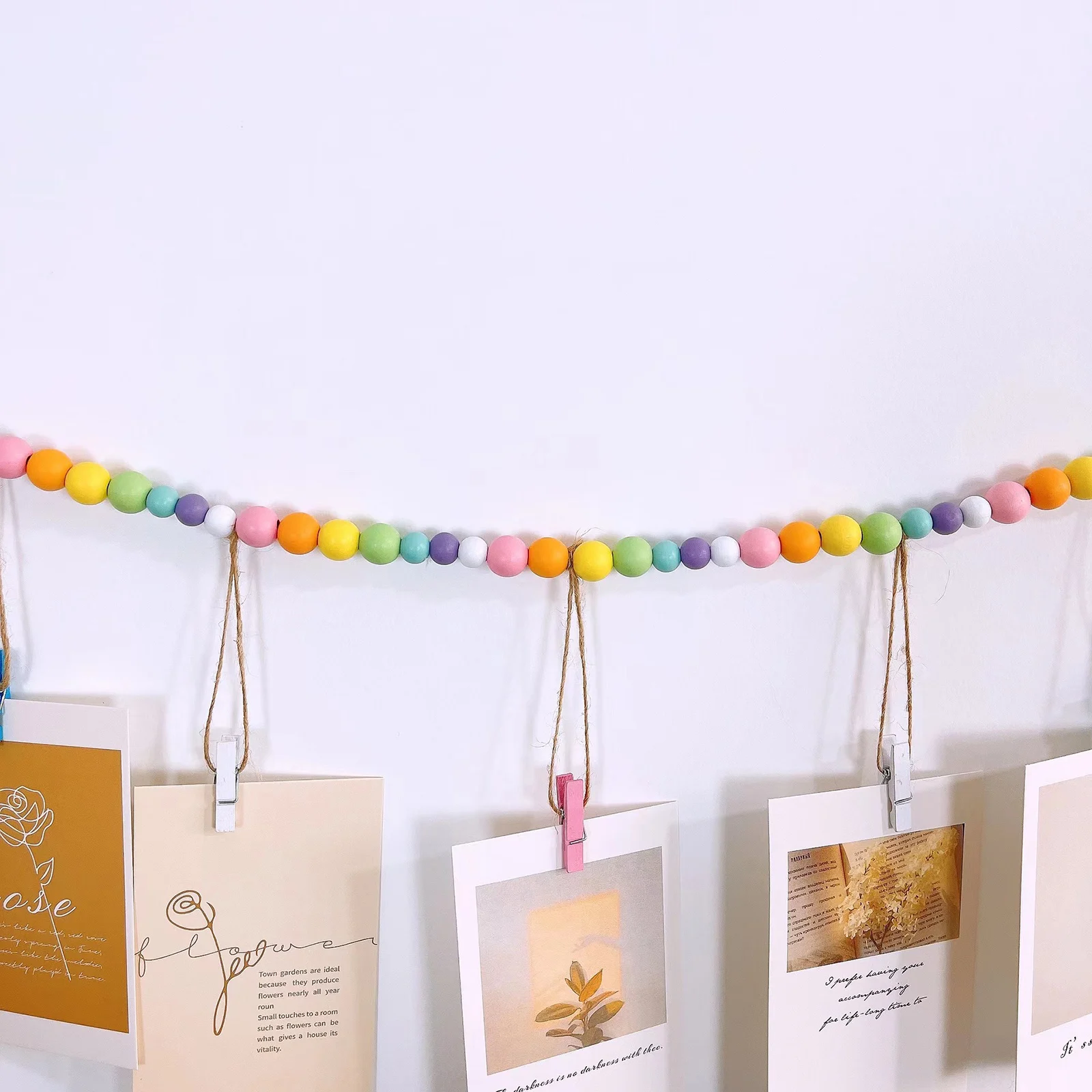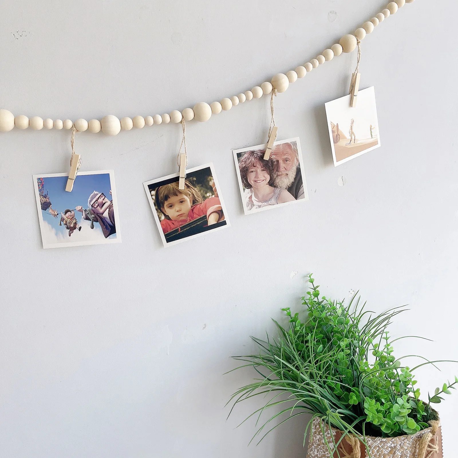 1. La Pantalla de fotos está hecha de cuentas de madera y Cuerda de yute en su conjunto, las cuentas tienen una superficie lisa, son duraderas. También puede hacer bricolaje en cuentas de madera y diseñar un marco de fotos colgante característico que sea suyo y único.