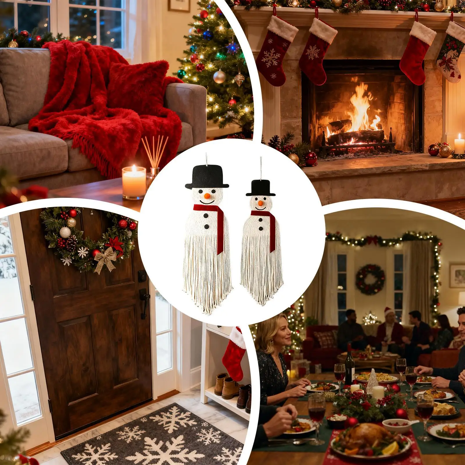 5.Recuerdo encantador: este colgador de pared de macramé está diseñado para brindar calidez y alegría a su hogar, funcionando como un recuerdo navideño ideal para amantes, colegas o amigos, creando recuerdos preciados durante las temporadas festivas y celebraciones alegres.