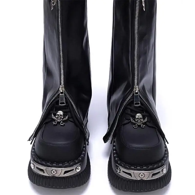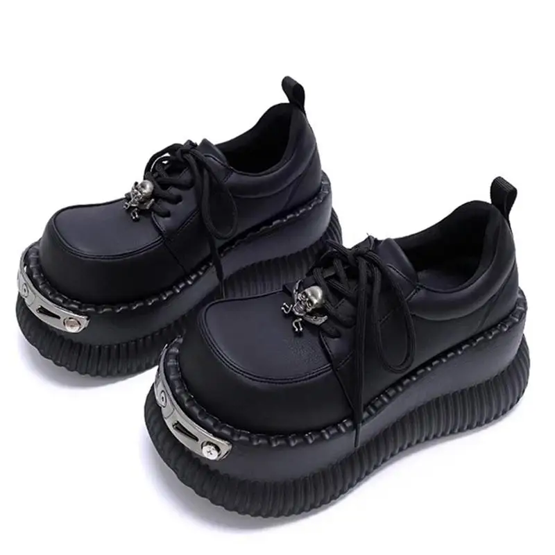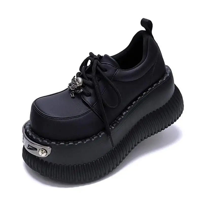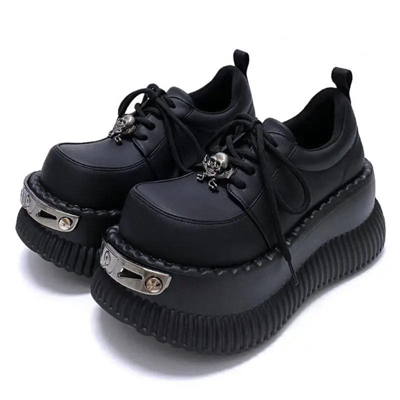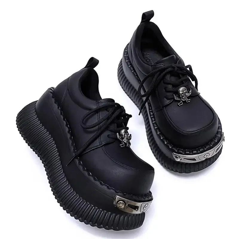 Decoración de Metal, punta redonda, plataforma inferior gruesa, tacones gruesos, zapatos de tacón para mujer con cordones, moda Ins negra Y2K Punk Street, zapatos de mujer
