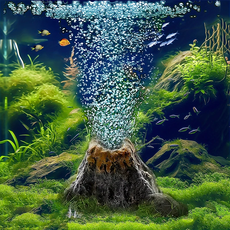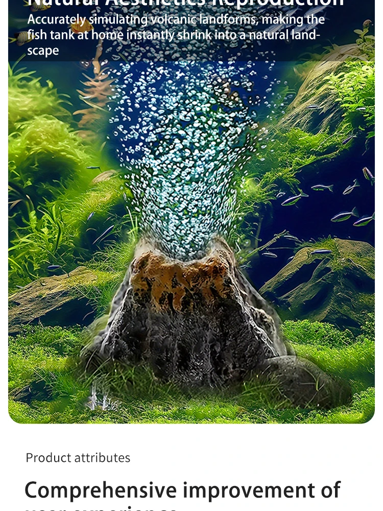 Diseño llamativo: presenta un impresionante diseño de erupción volcánica que crea una apariencia cautivadora y natural en su acuario.