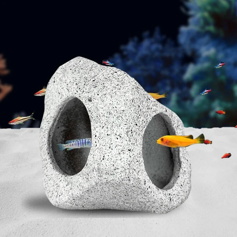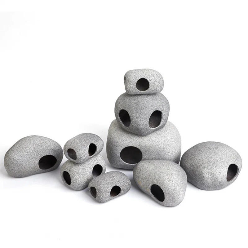 Decoración subacuática de cueva para pecera, refugio para peces y camarones, decoración de paisaje de cerámica, decoración de acuario de arcilla púrpura
