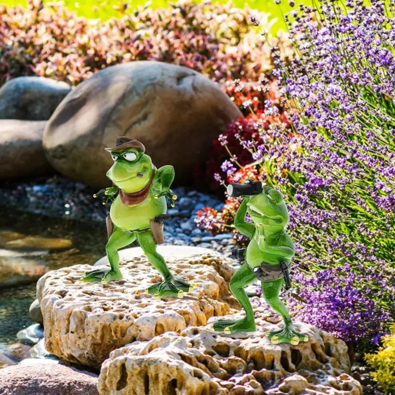 1. Experimenta el verdadero encanto occidental: siente el paisaje del vaquero occidental con nuestra decoración de césped de rana.El diseño de forma clásica y el estilo vaquero occidental americano aportan el Wild West Cowboy directamente a su jardín, agregando un magnífico toque de aventura a su jardín.
