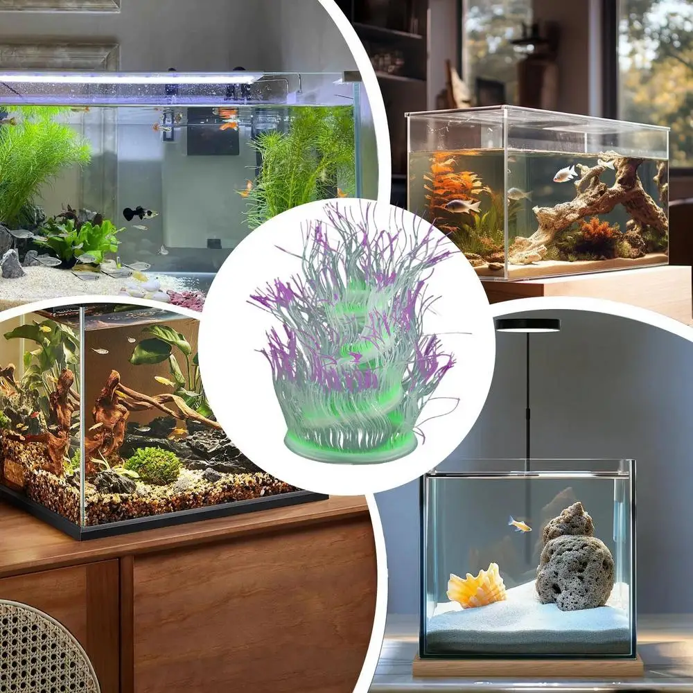 Cree un ambiente sereno en el interior con adornos de acuario que brillan en la oscuridad que reflejan la vida acuática natural.Sus formas realistas y su acabado suave garantizan seguridad y elegancia.Diseñados con ángulos de ubicación ajustables, estos adornos ofrecen versatilidad al organizar su exhibición.