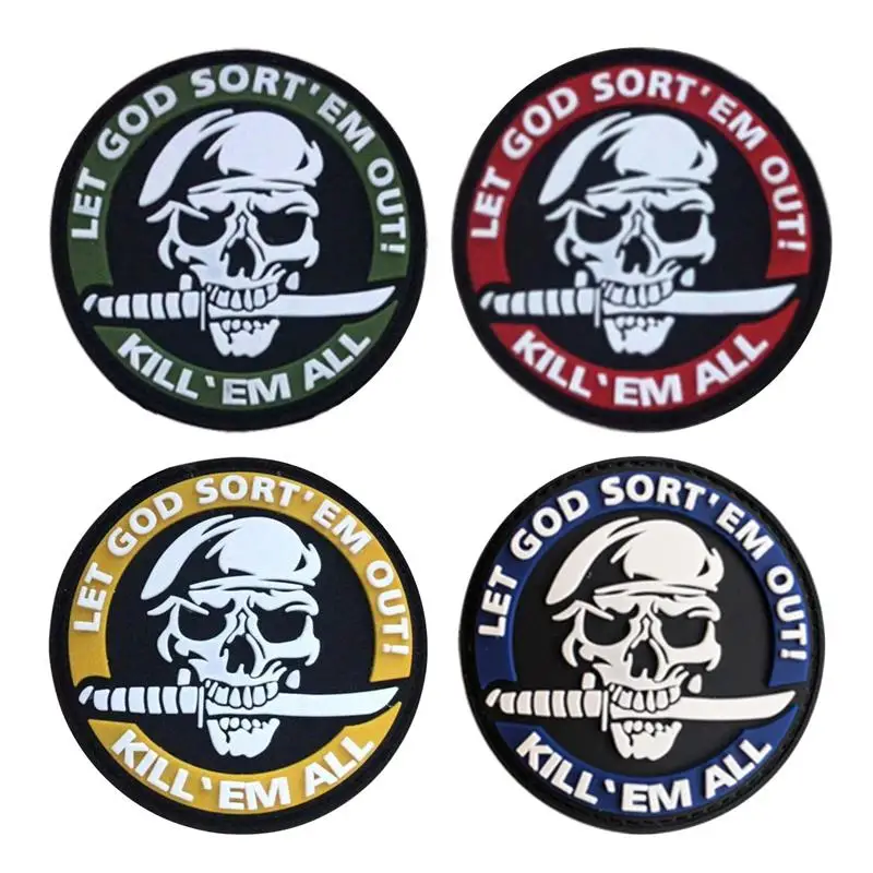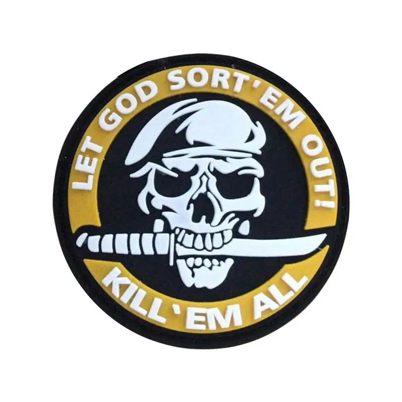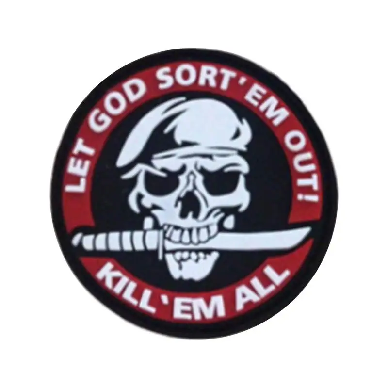 Nombre del producto: Parche bordado Kill Em All, deja que Dios ordene, insignia militar, parches decorativos tácticos, adorno de apliques de costura