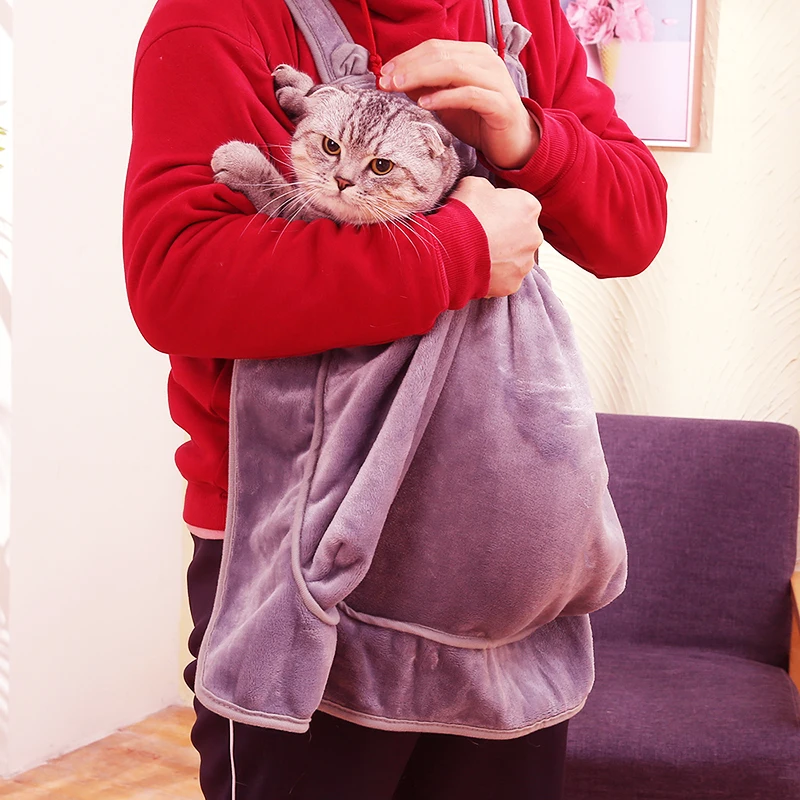 Porta gatos, un delantal para gatos, delantal para transportar, terciopelo Coral suave, delantal para dormir en el pecho para mascotas, Babero con bolsillo para sujetar gatitos