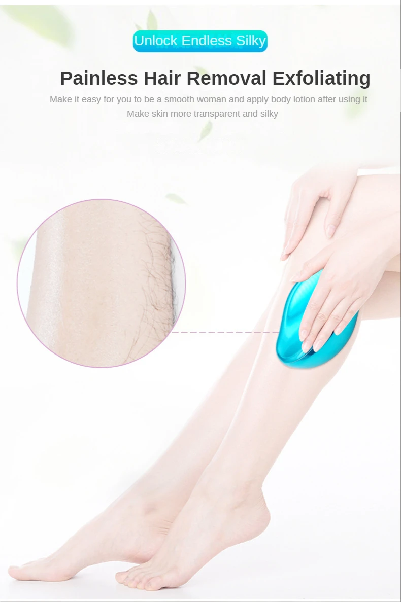 3. Fácil de usar: el borrador de vidrio liso es fácil de operar. Con solo un roce en la piel, Crystal Hair Eraser revelará la nueva piel suave que ha estado escondiendo bajo su cabello oscuro. La depilación mágica indolora también elimina la piel muerta de la superficie de la piel, ayudando a iluminar el cutis y sentirse suave al tacto.