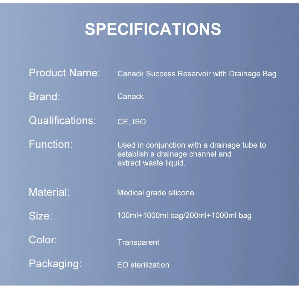 2.Equipado con una bolsa de drenaje de gran capacidad de 1000 ml, es más conveniente y eficiente descargar líquidos residuales.
