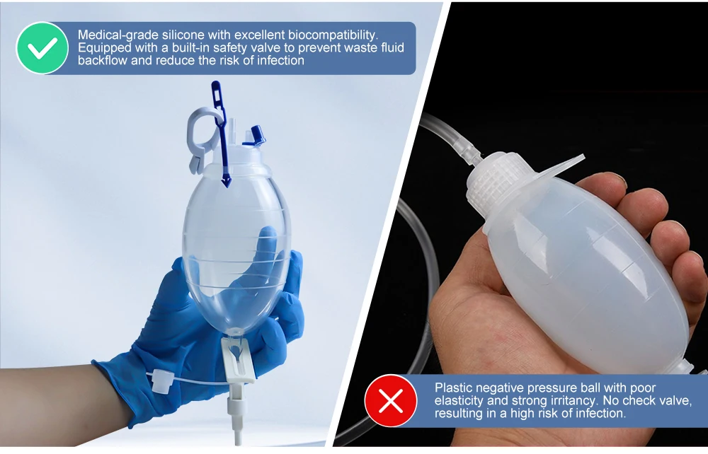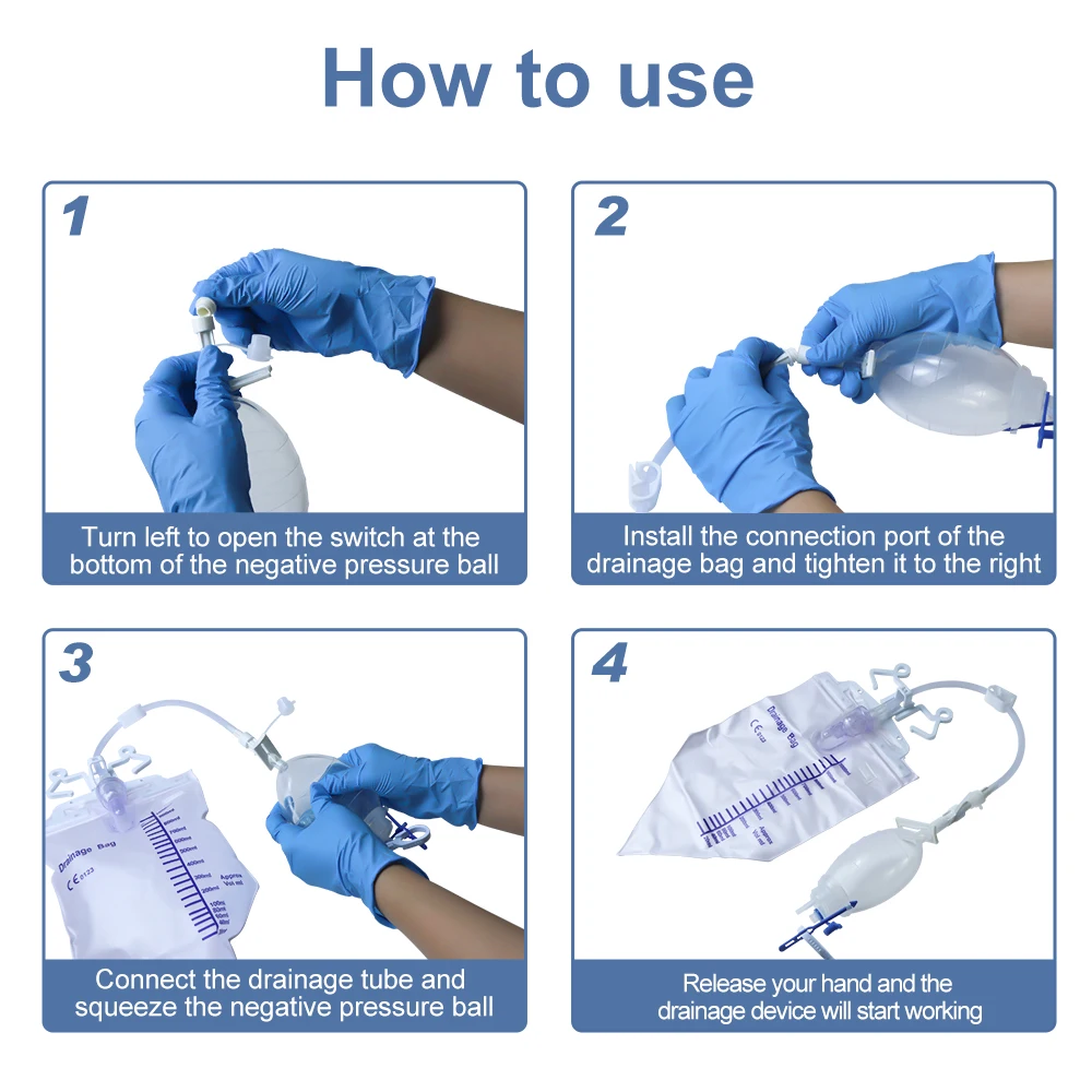 Depósito de succión de silicona debajo del drenaje con bolsa de drenaje de 1000 ml, equipo veterinario desechable estéril, drenaje de heridas para mascotas