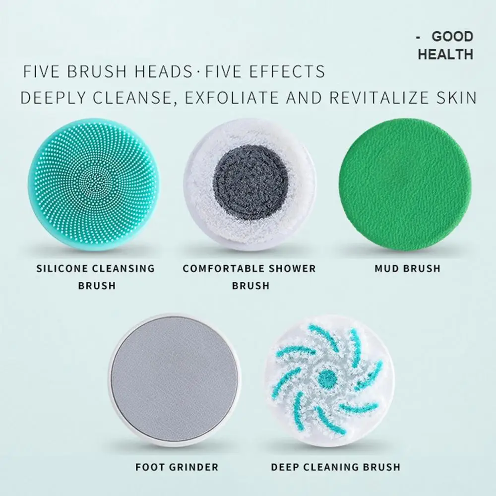 1.Fácil aplicación: para frotar la cara, la espalda y otras partes del cuerpo, utilice el cepillo de ducha corporal, que tiene 5 cabezales de cepillo distintos.La piel seca, la piel grasa y la piel sensible pueden beneficiarse de servicios de limpieza a nivel SPA gracias a cinco modos de limpieza diferentes.
