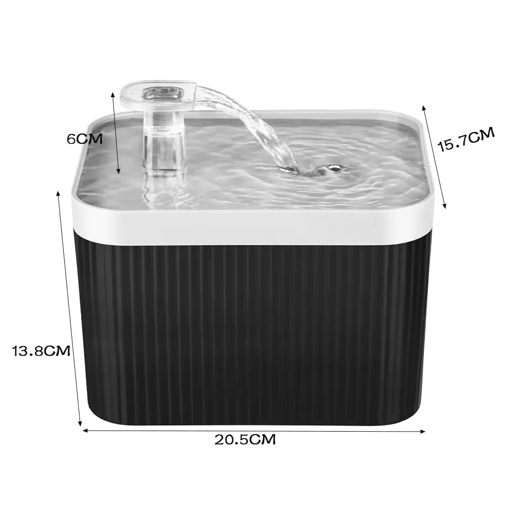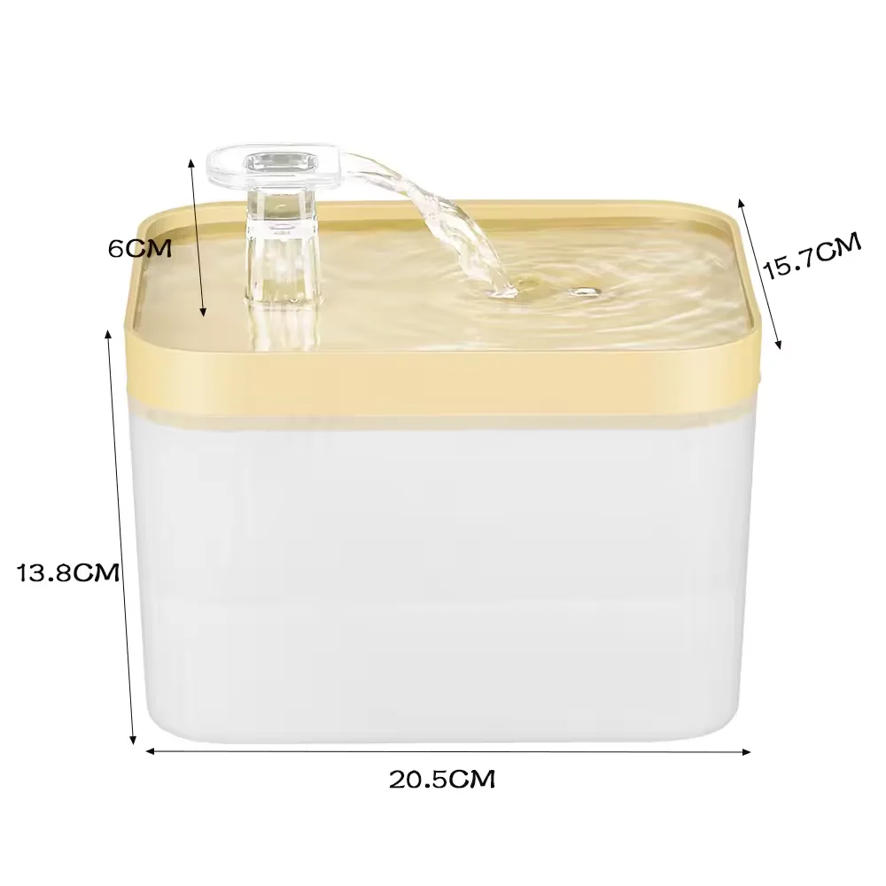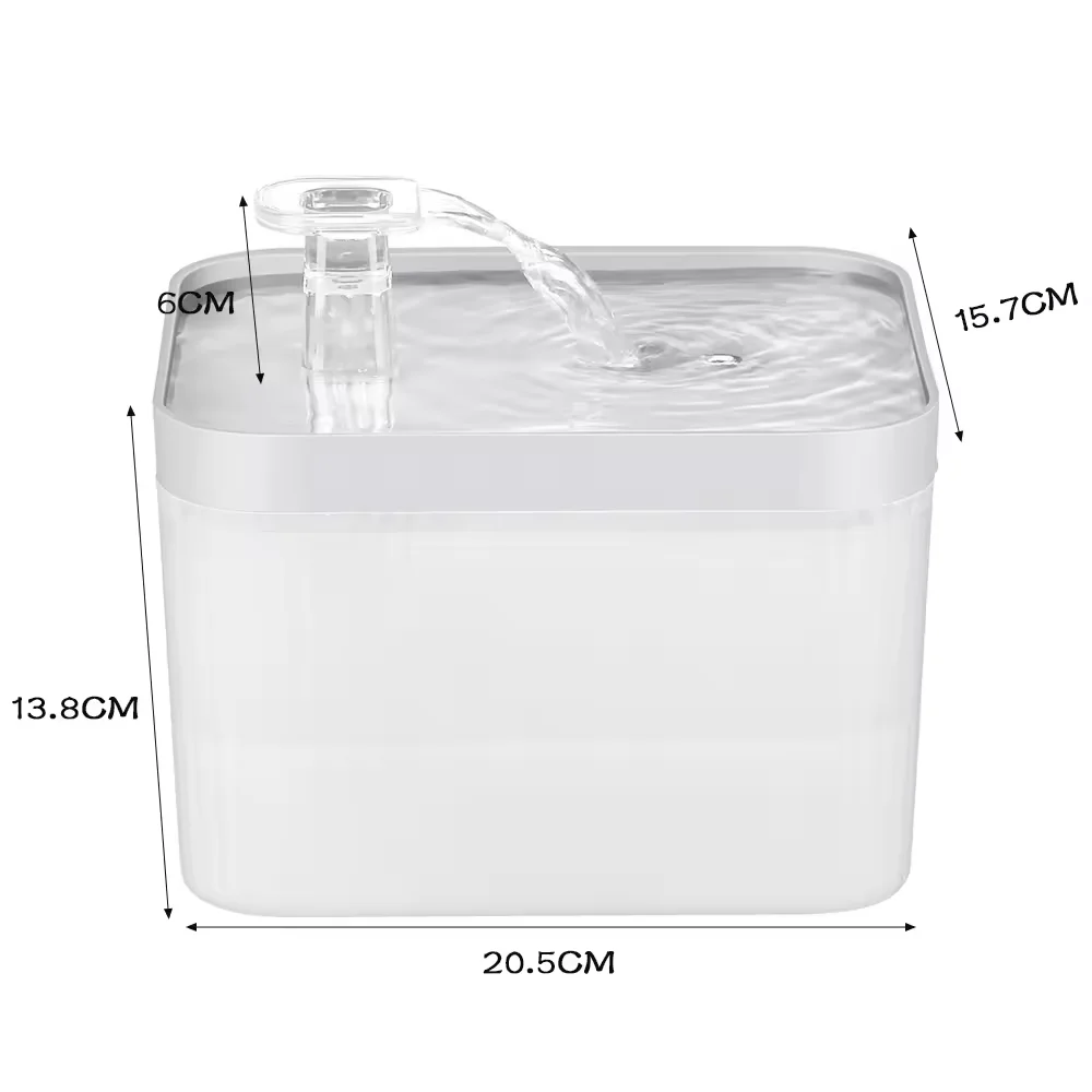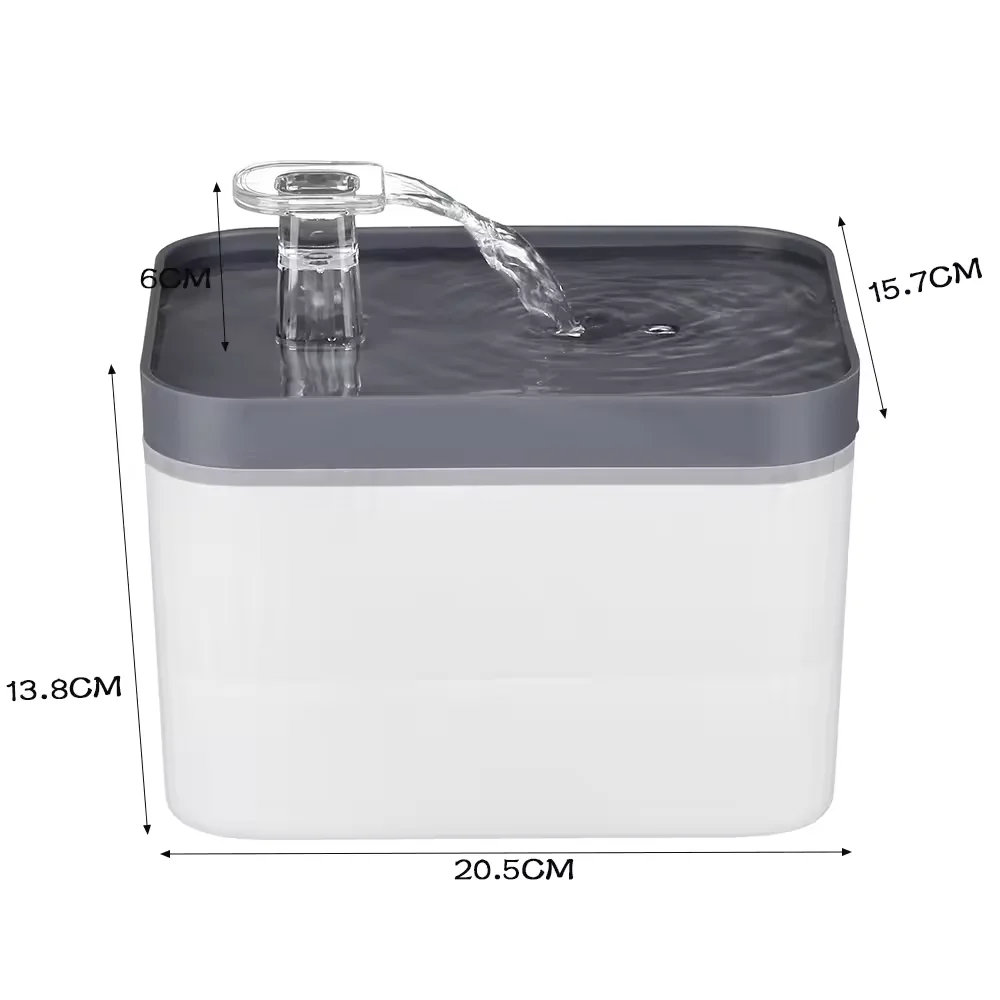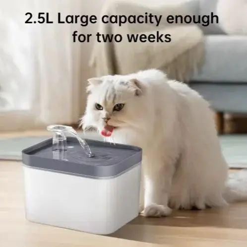 Este bebedero automático para gatos tiene un tanque de agua de gran capacidad de hasta 2,5 litros, que puede satisfacer las necesidades de bebida de su gato durante varios días con un solo llenado, por lo que no necesita preocuparse de que su gato se quede sin agua en casa.