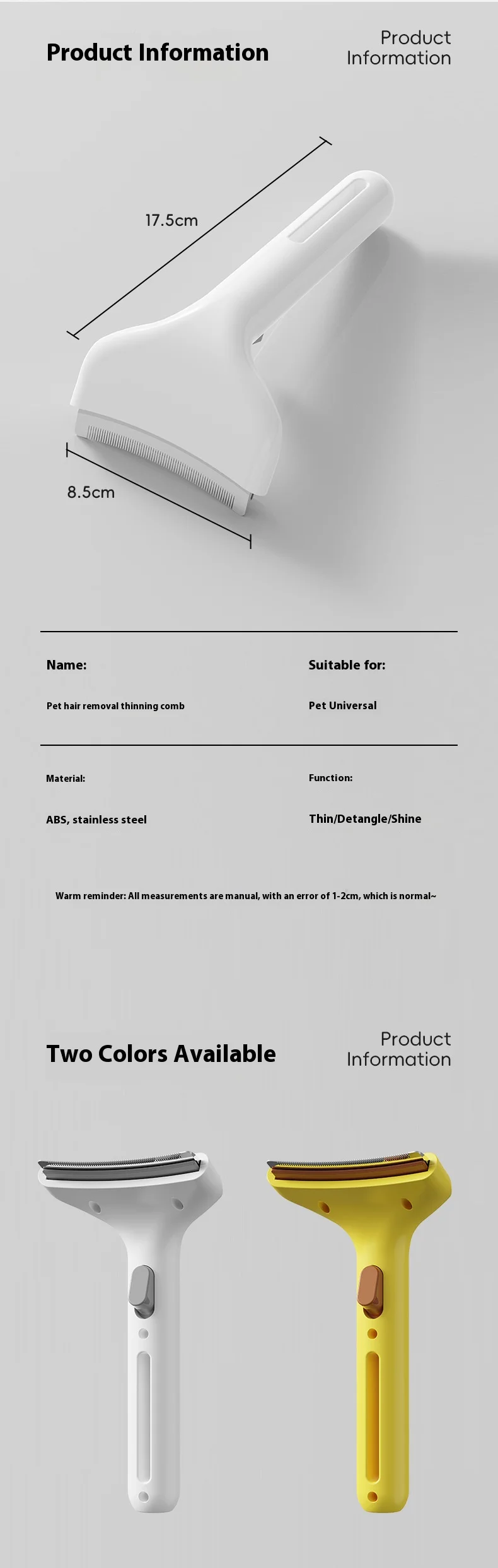 Deshedder de mascotas con hoja curva, peine desenredante para pelo largo y corto, herramienta reductora para la caída del cabello para gatos y perros