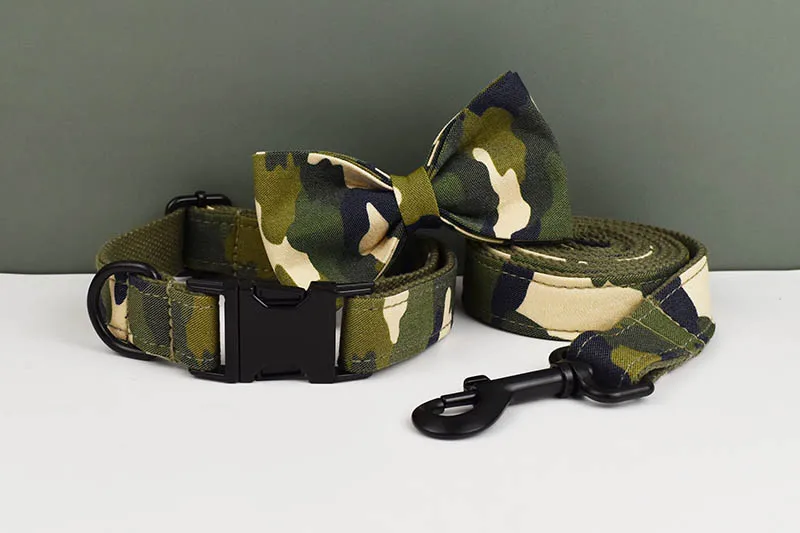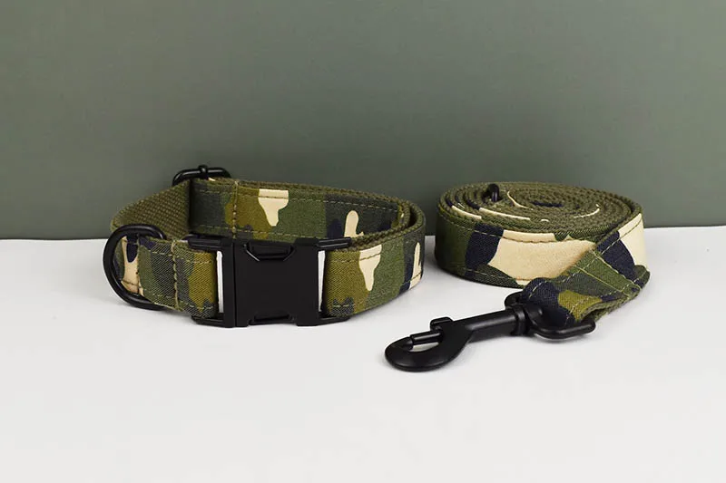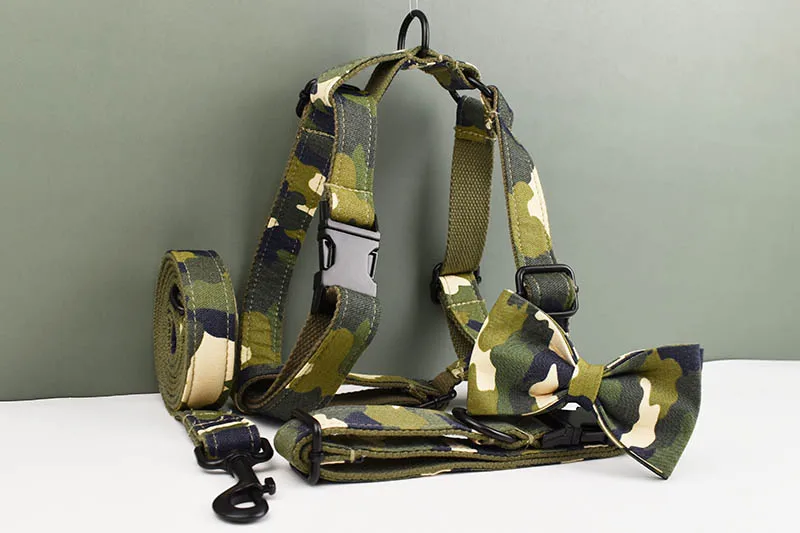 Collar de perro táctico de lujo personalizado de diseñador, patrón de camuflaje, Collar de perro de algodón suave, correas, arnés, conjunto de lazo, Camuflaje 06