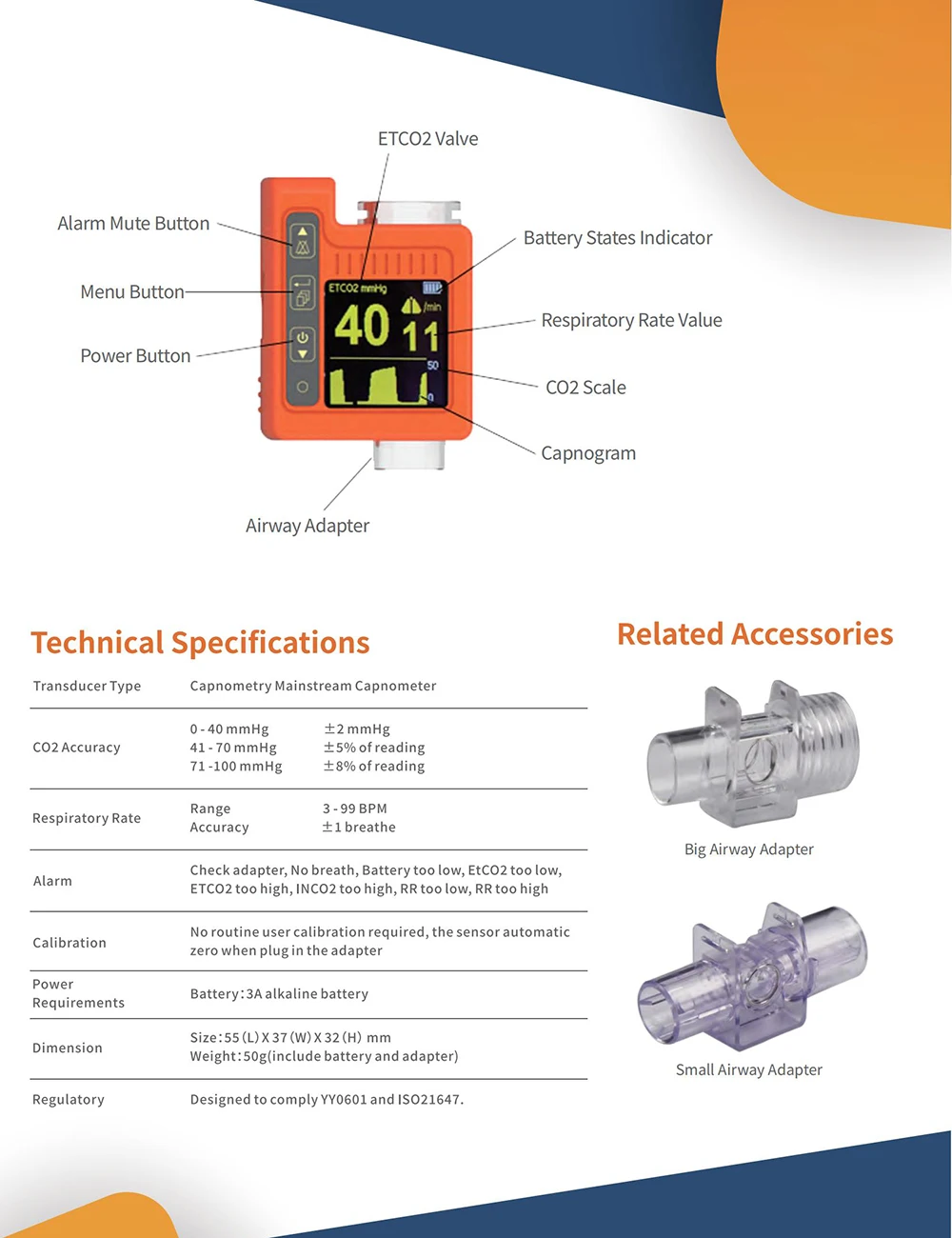 Detector de Gas, probador de dióxido de carbono, Detector de dióxido de carbono Visible, módulo de extremo de respiración para uso de mascotas, accesorios de clínica