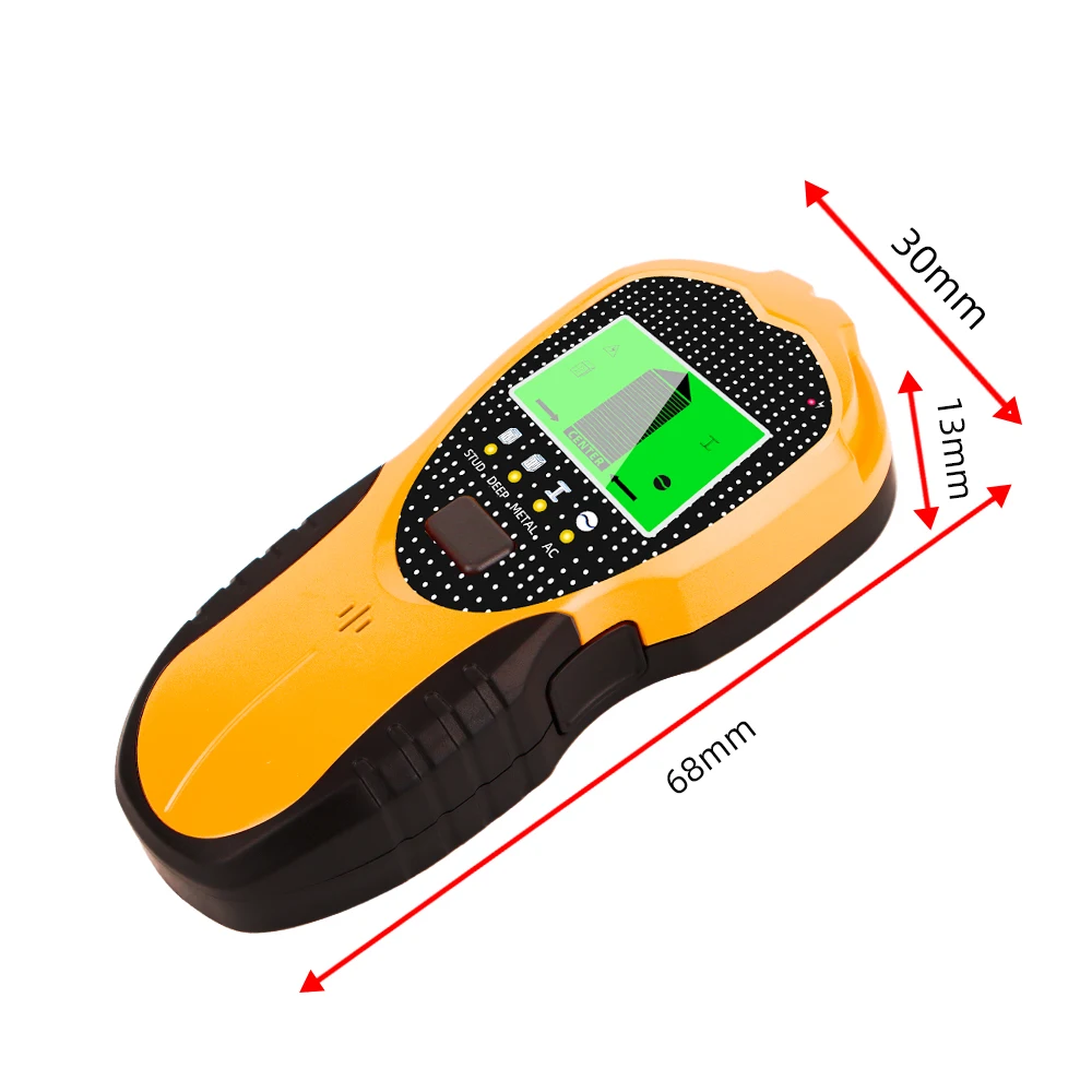 1.Utilice sensores internos mejorados.Detecta cambios en la densidad del espacio detrás de la pared y puede localizar el centro de vigas con mucha precisión.también.La forma de este escáner de pared también muestra los bordes de los montantes.El centro del perno es la ubicación más segura al instalar algo pesado.Los bordes te ayudan a volver a comprobar la posición.¡Llévalo a casa y haz más fácil tus tareas de bricolaje!