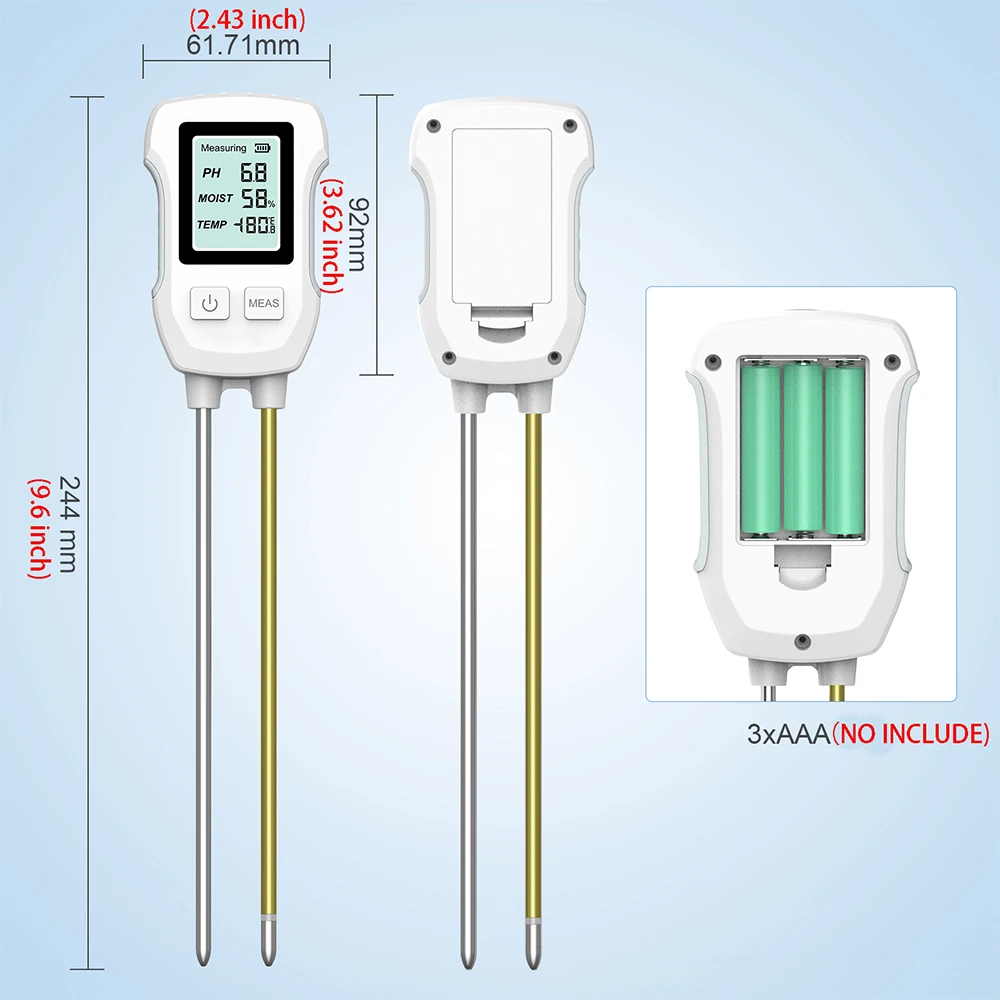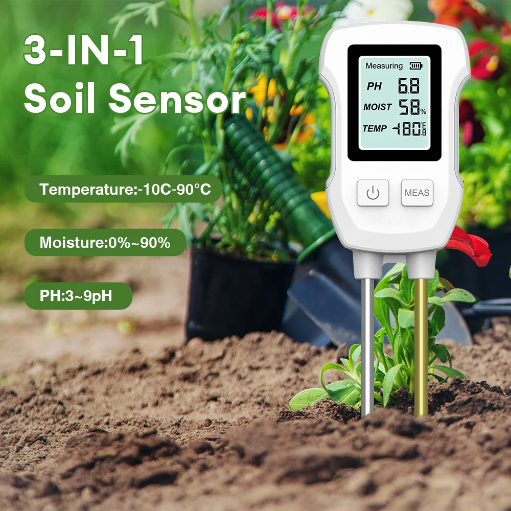 Detector de suelo de alta precisión 3 en 1, medidor de temperatura y humedad del PH del suelo, medidor de humedad del suelo con retroiluminación, higrómetro de suelo para plantas de jardín