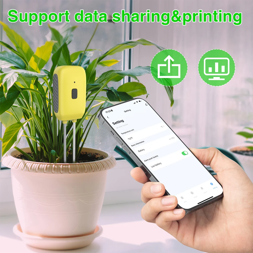 Bluetooth 2 en 1 Detector de temperatura y humedad del suelo Analizador de suelo portátil Medidor inteligente de humedad del suelo para plantas de flores de jardín