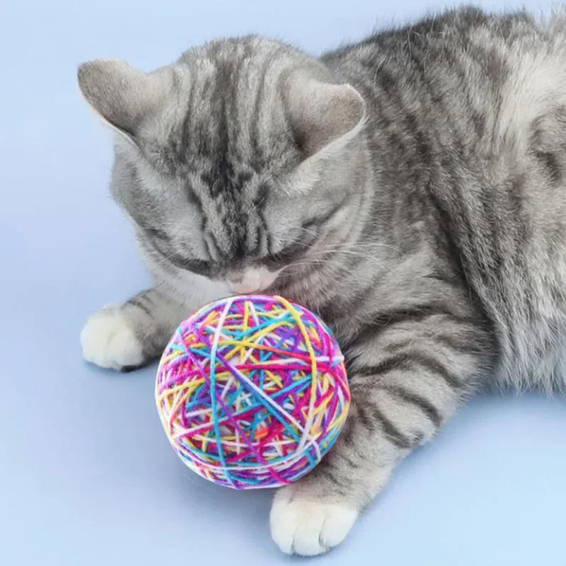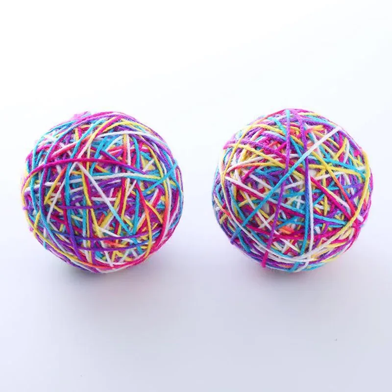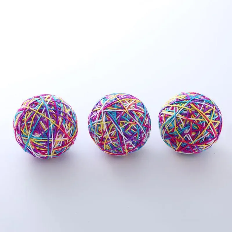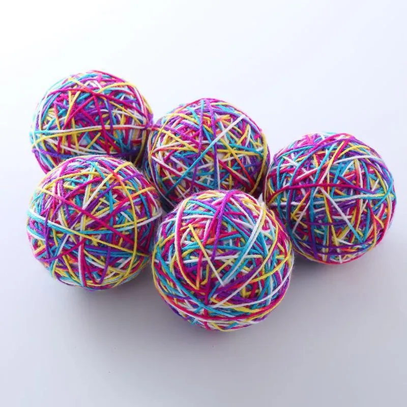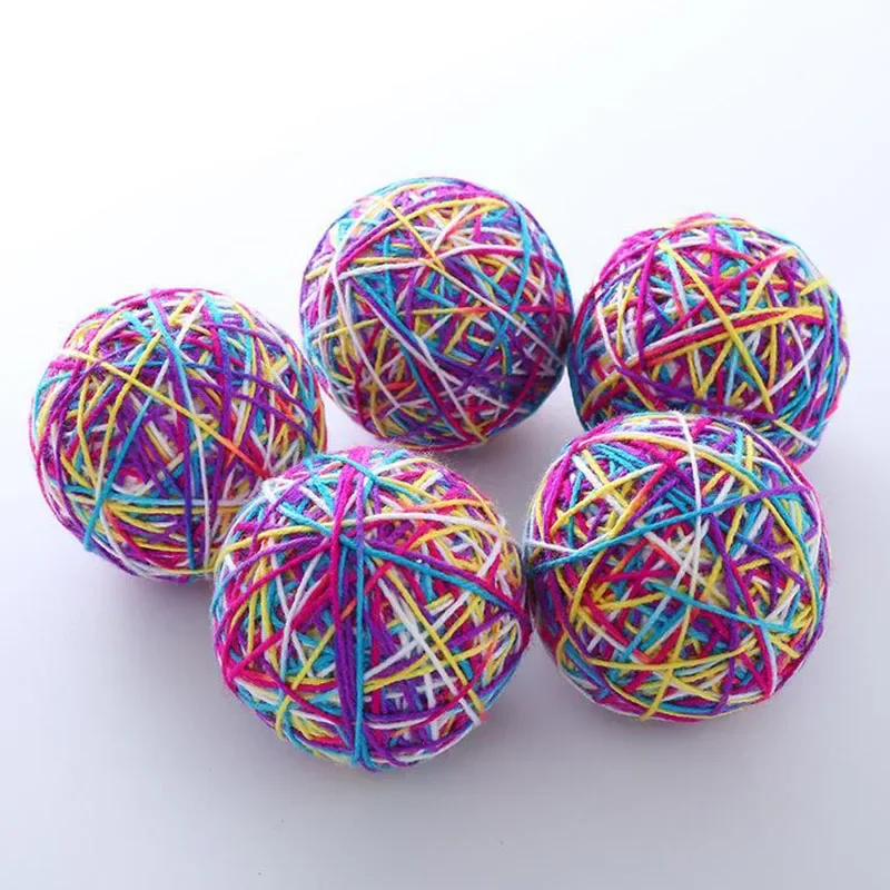 Colorido y divertido juguete de lana para su mascota, con anillo de metal en el medio de la pelota para excitar a sus mascotas.