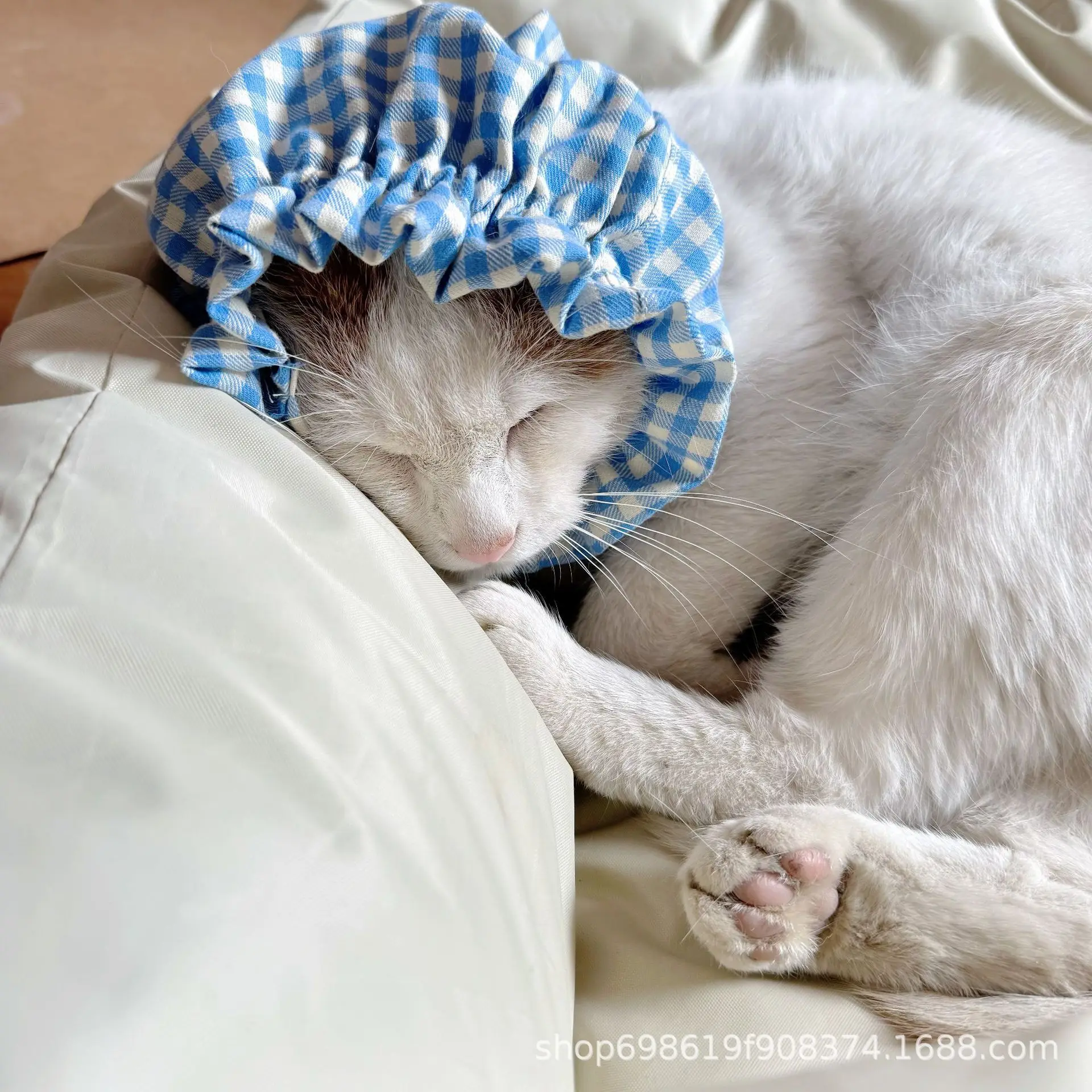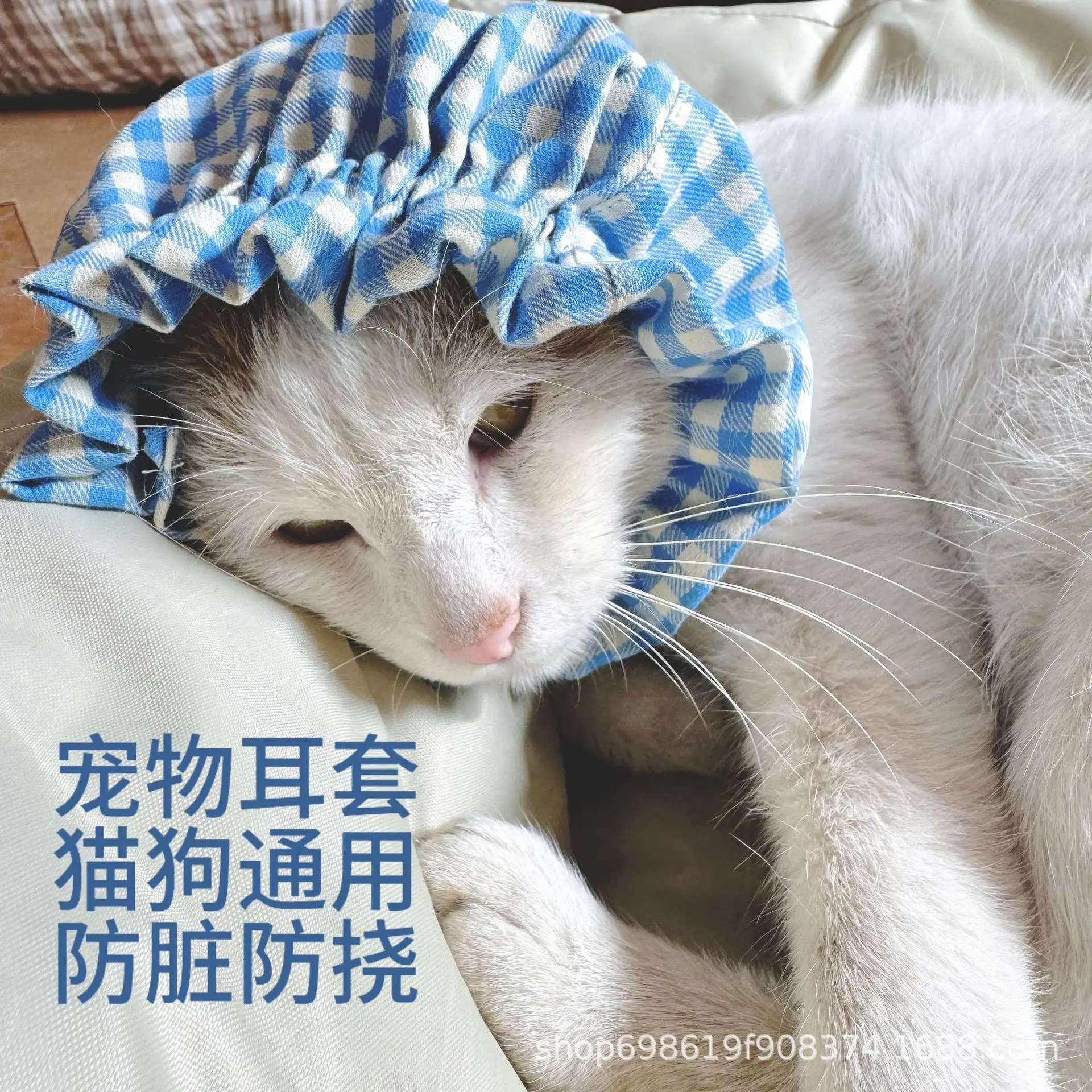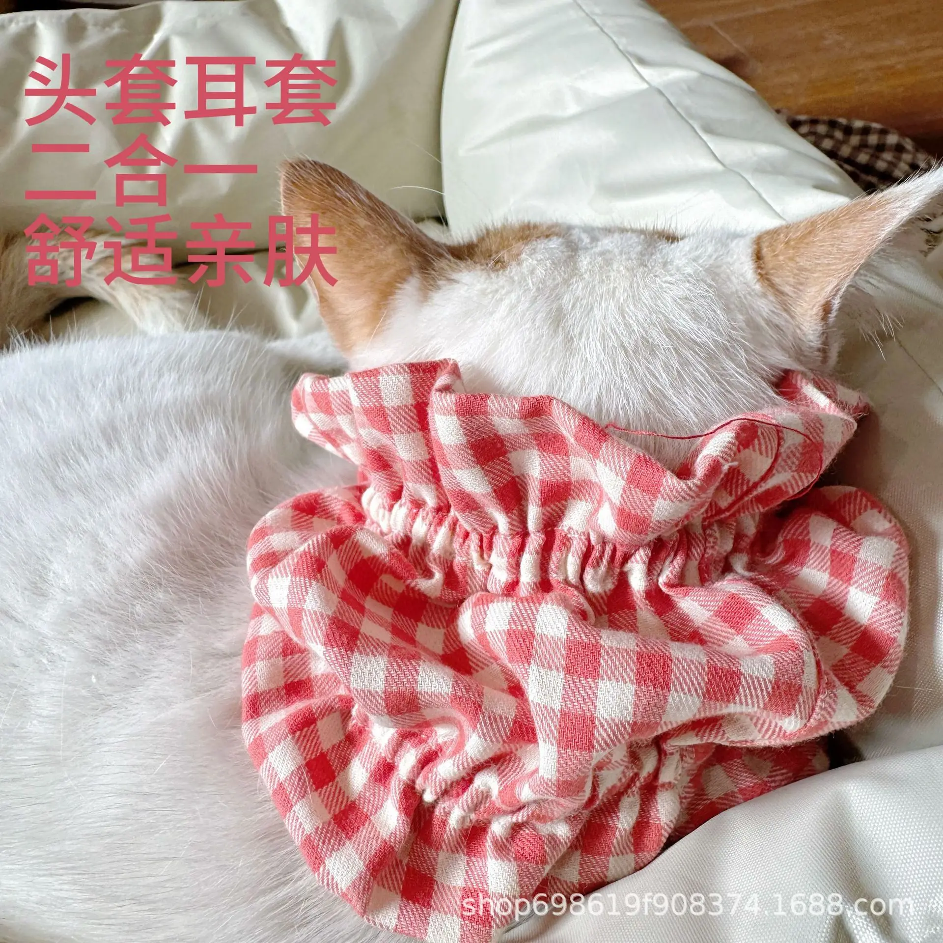 Diadema a cuadros de primavera para mascotas, puntas para los oídos antisuciedad, sombrero, bufanda de primavera, accesorios para perros pequeños