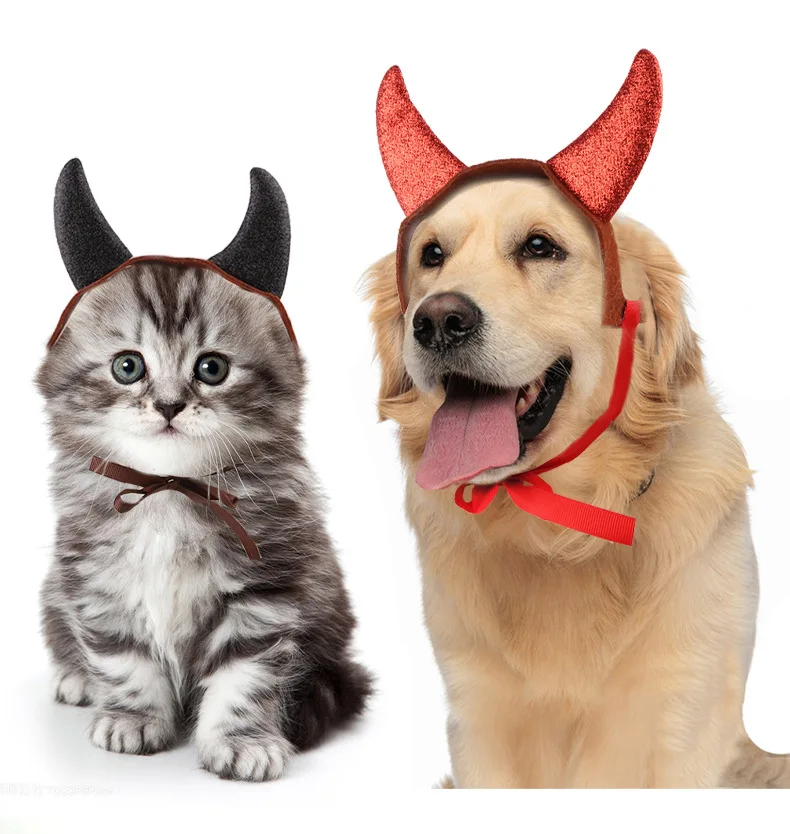 Diadema de Halloween para perro, disfraz de Mascota, cuernos de vaca, decoraciones divertidas, sombreros de gato, accesorios para mascotas, accesorios para cachorros