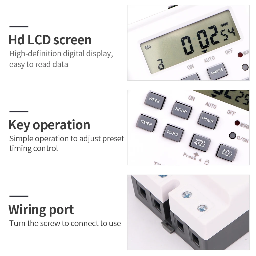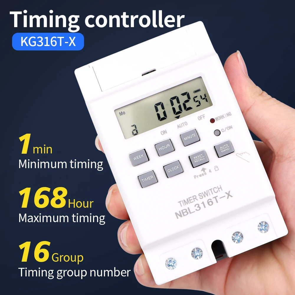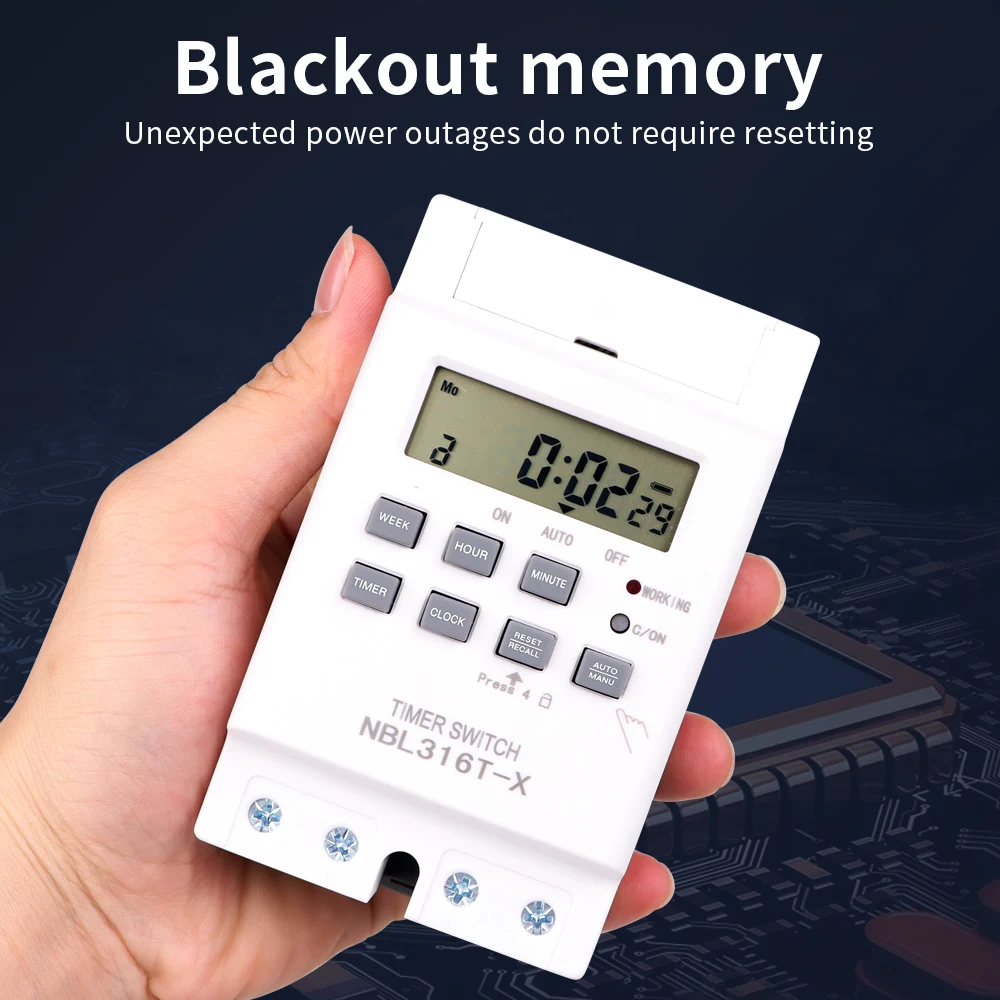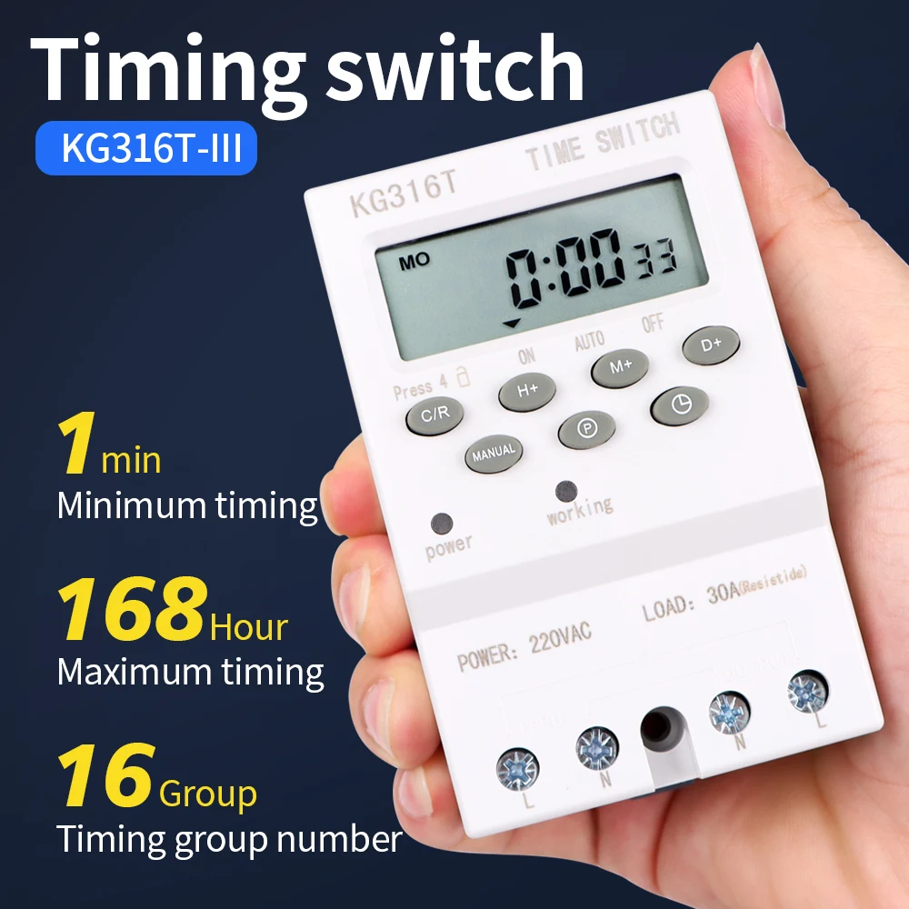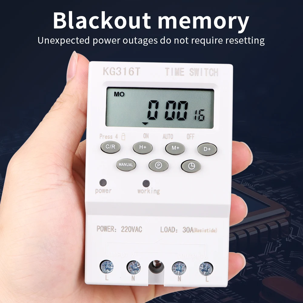 Interruptor de temporizador Digital, temporizador automático semanal de 7 días, relé programable, Control de sincronización, carga alta, 220V, 25/30A, memoria de corte de energía