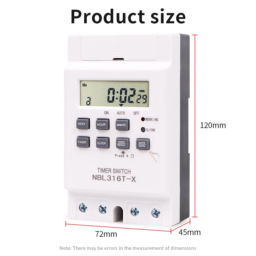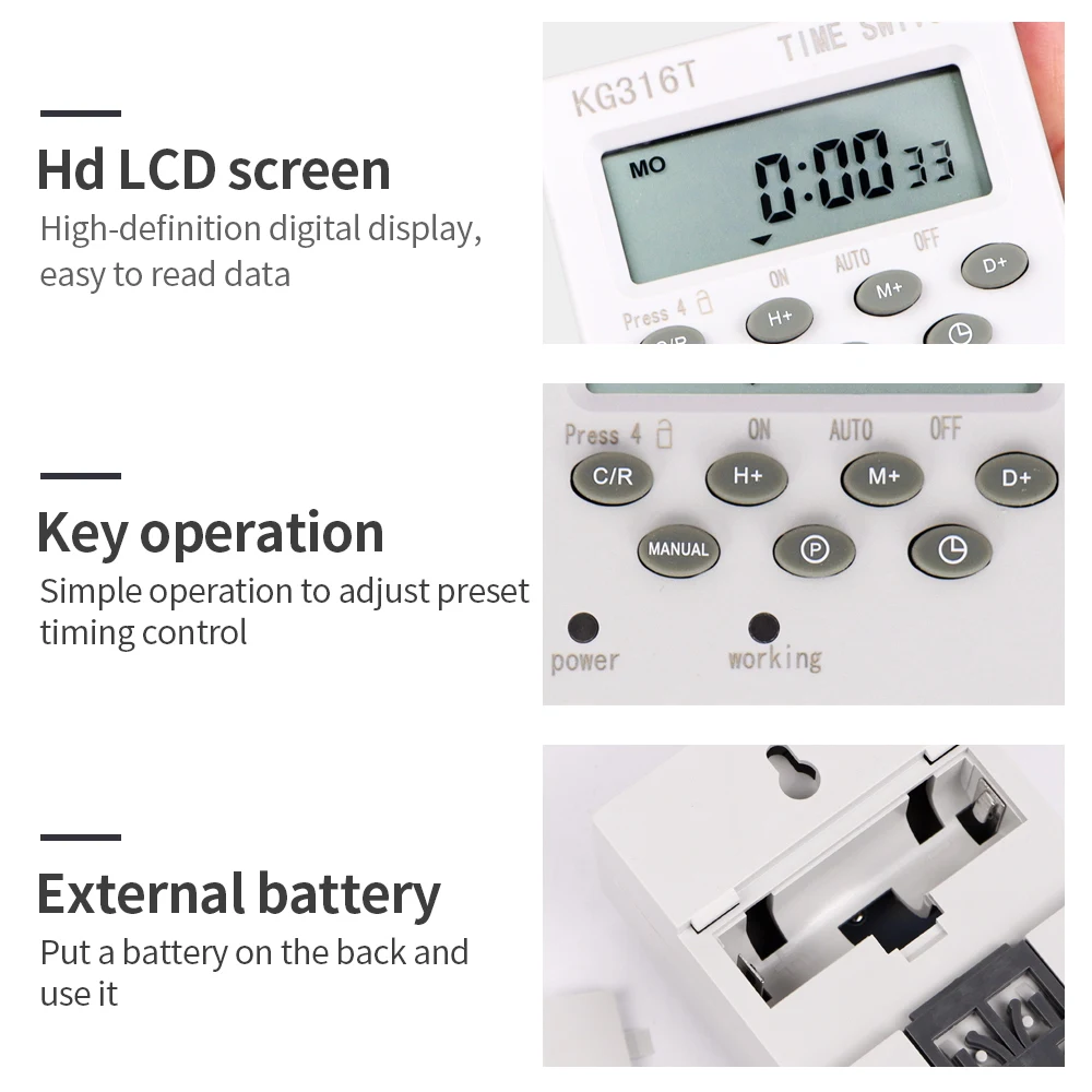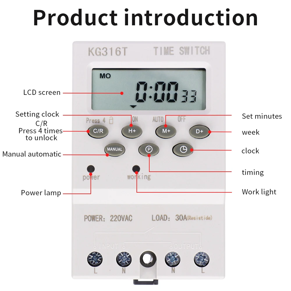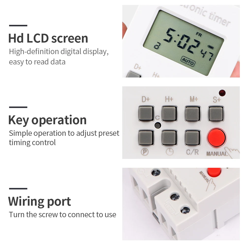 Interruptor de temporizador Digital, temporizador automático semanal de 7 días, relé programable, Control de sincronización, carga alta, 220V, 25/30A, memoria de corte de energía