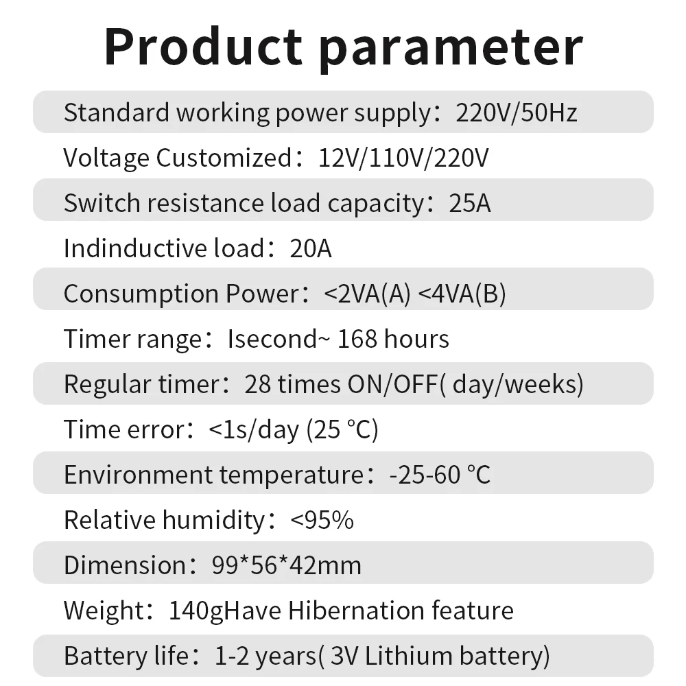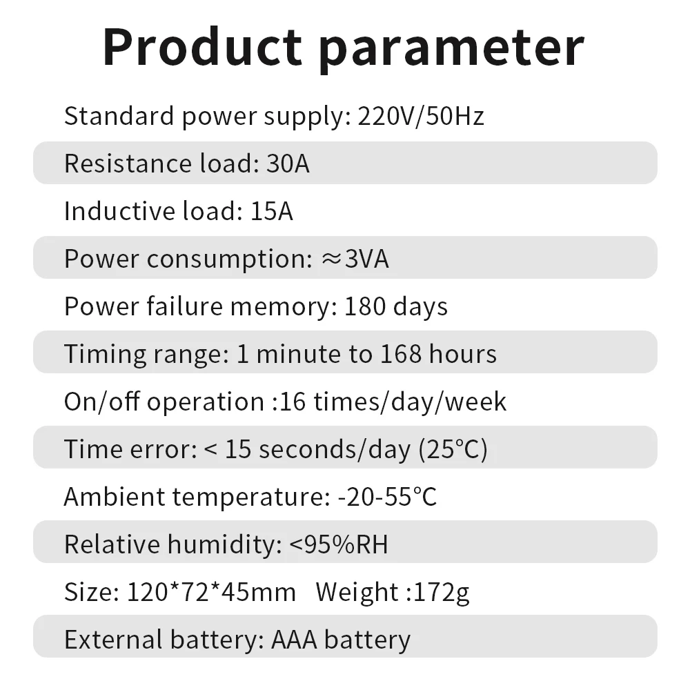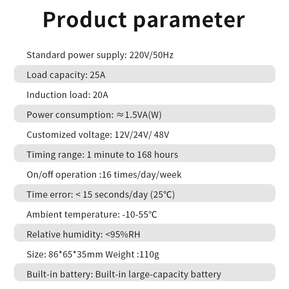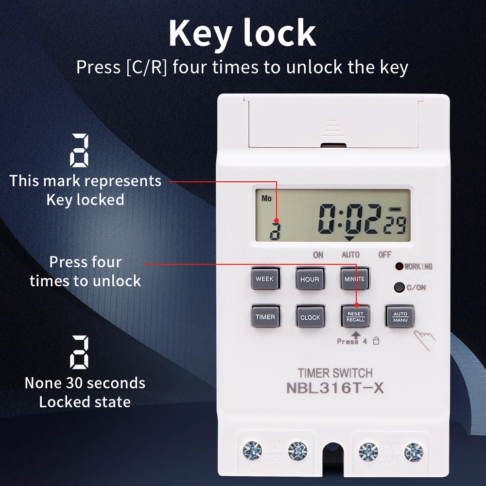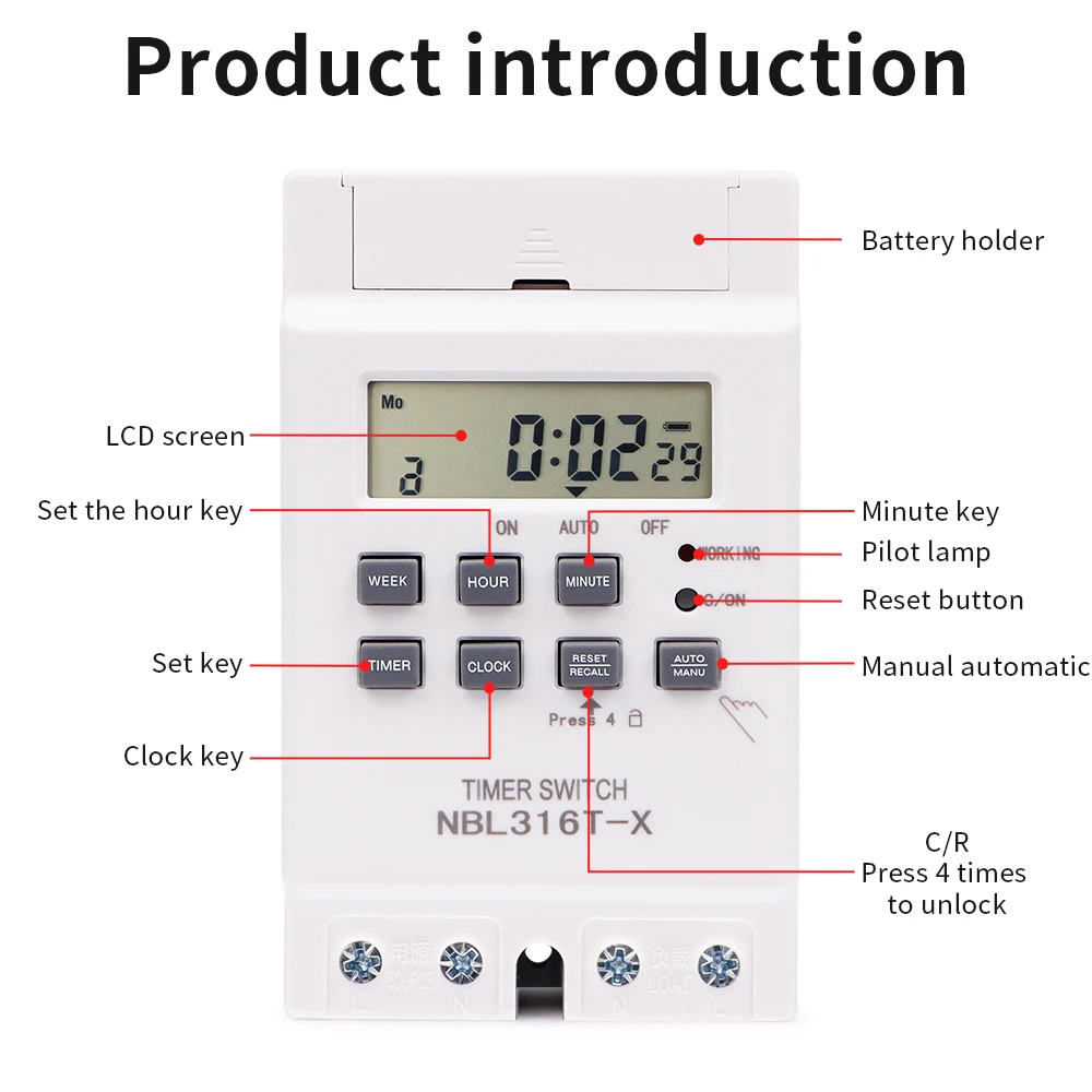 Interruptor de temporizador Digital, temporizador automático semanal de 7 días, relé programable, Control de sincronización, carga alta, 220V, 25/30A, memoria de corte de energía