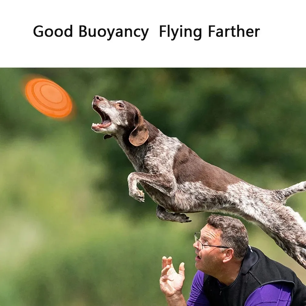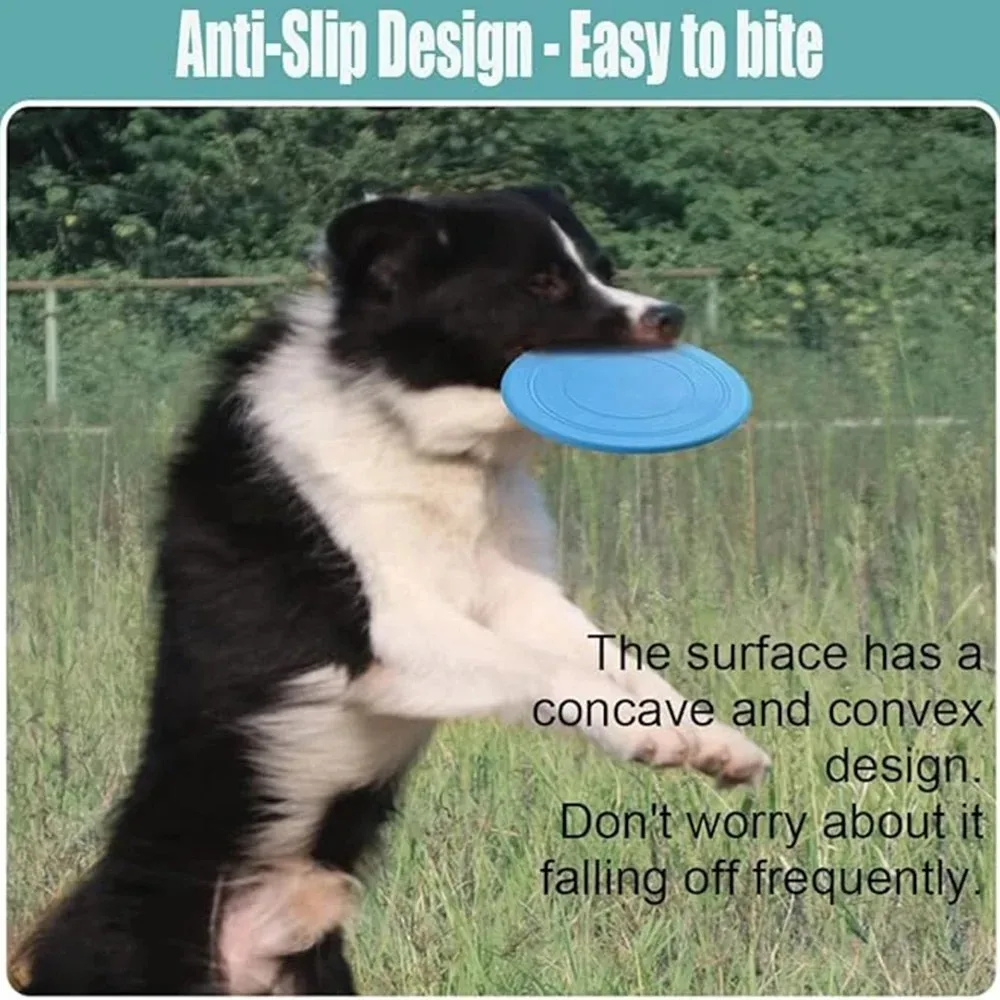 MATERIAL DE ALTA CALIDAD:Nuestro disco volador para perros está hecho de caucho natural premium duradero y no tóxico, que es liviano y muy resistente para soportar condiciones climáticas y desgaste adversos.La tela suave y elástica evita que este disco volador dañe las encías y los dientes de su perro.