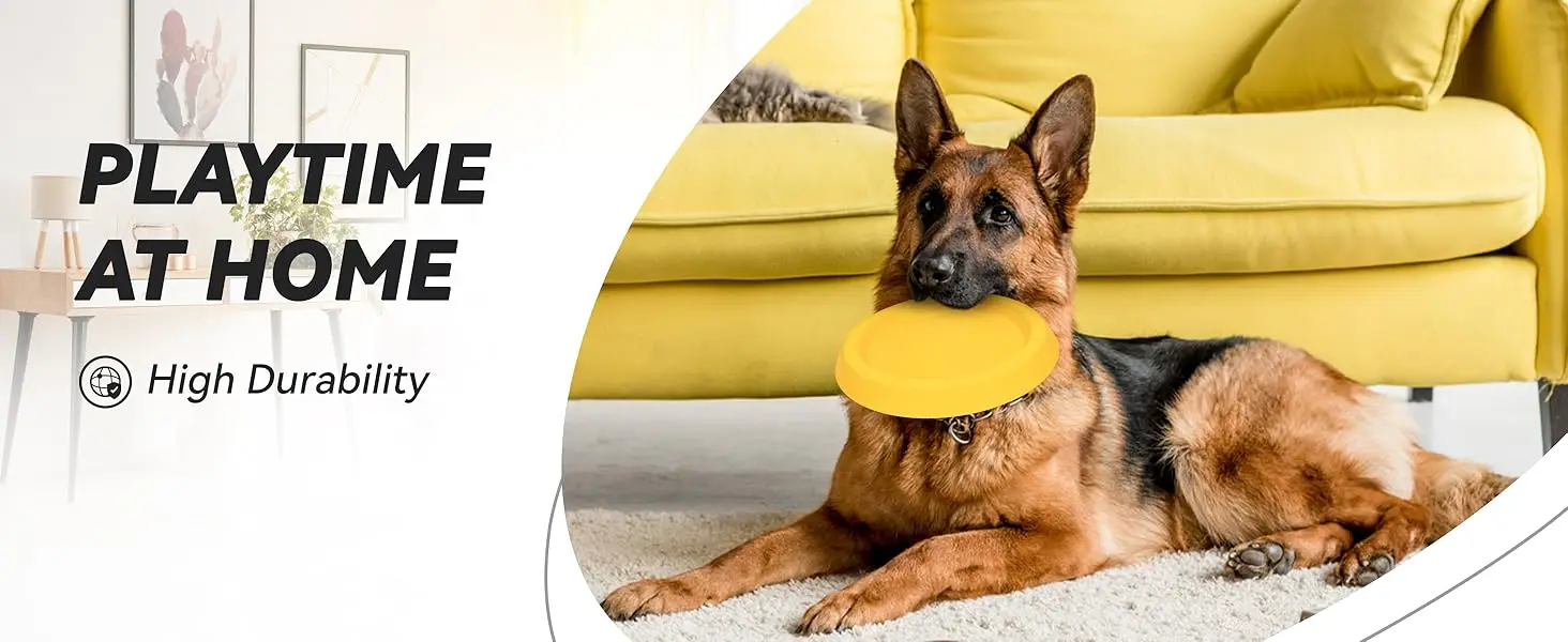 Altamente visible: destaca entre la multitud, el vibrante color amarillo de estos discos voladores indestructibles de juguete para perros está diseñado para una alta visibilidad en cualquier entorno.El color atrevido hace que sea fácil para su perro detectarlo incluso desde la distancia, ya sea en el parque, la playa o el patio trasero.