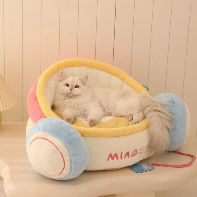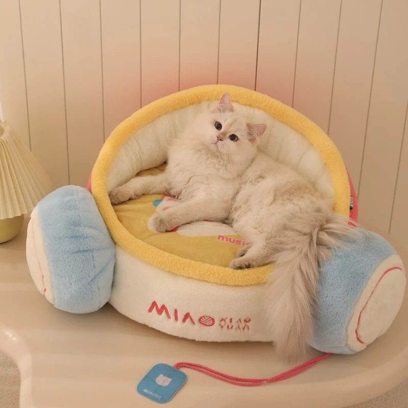 Diseño de auriculares para sofá para mascotas, bonito nido para gatos, casa portátil cálida, perrera, almohadilla cálida para cachorros, productos para mascotas, suministros, accesorios