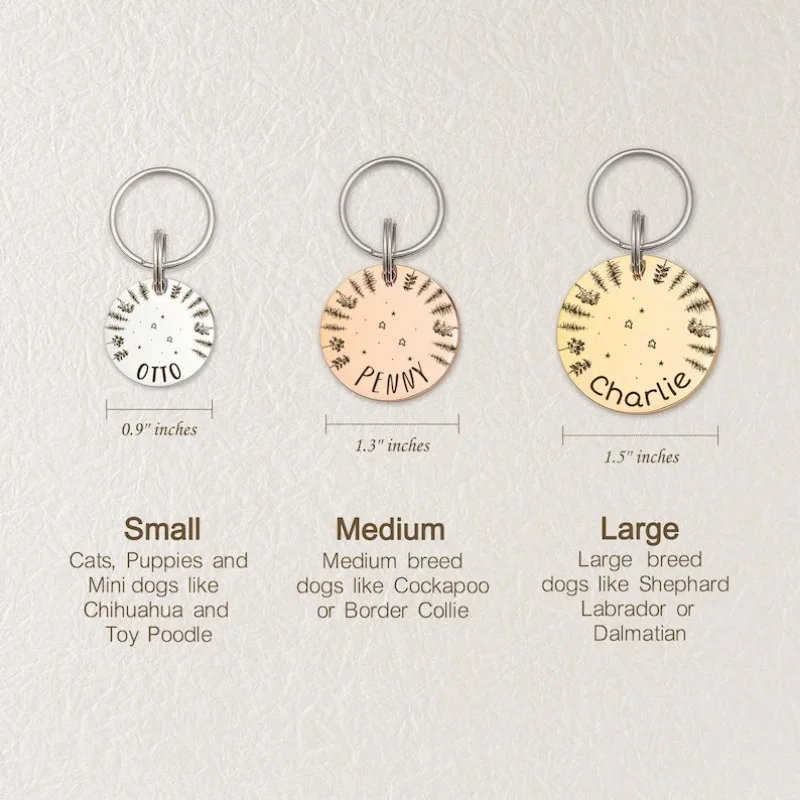 Diseño personalizado de madera y estrella, nombre de perro y gato, grabado láser, placa de identificación personalizada para mascotas, etiqueta de identificación para mascotas
