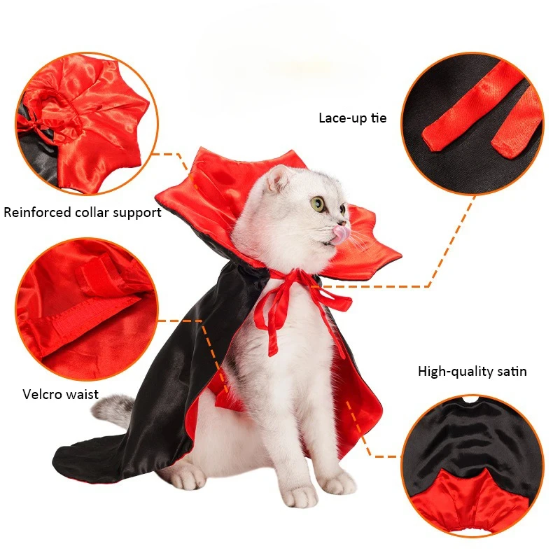 Disfraces de Halloween para mascotas, capas de vampiro personalizadas para gatos, ropa estereoscópica hermosa para cachorros, suministros para mascotas