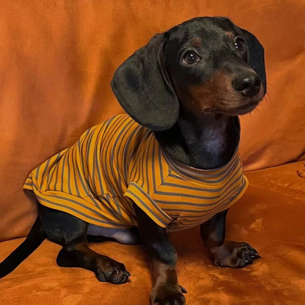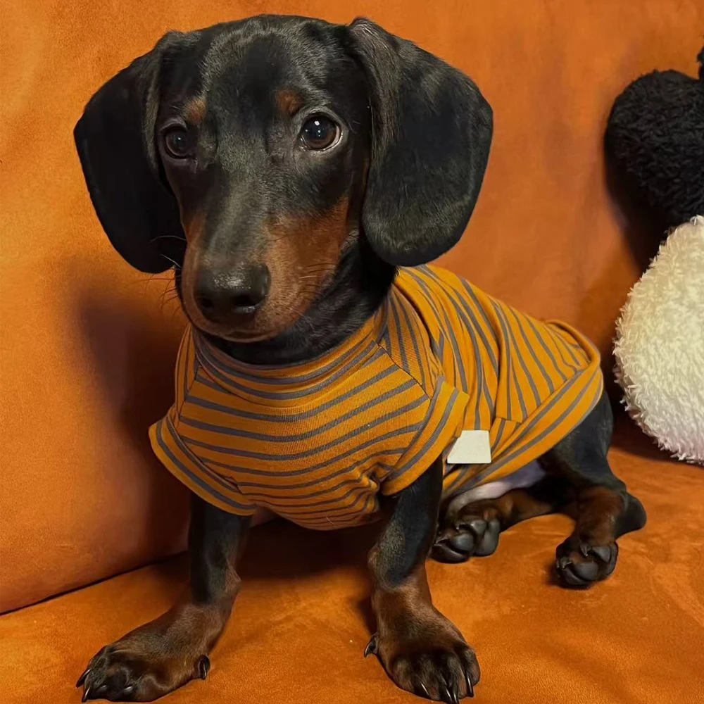 Disfraces para perros Camiseta a rayas de algodón de manga corta para perros Wiener Sudadera cálida para perros Dachshund Abrigo suave para perros Badger