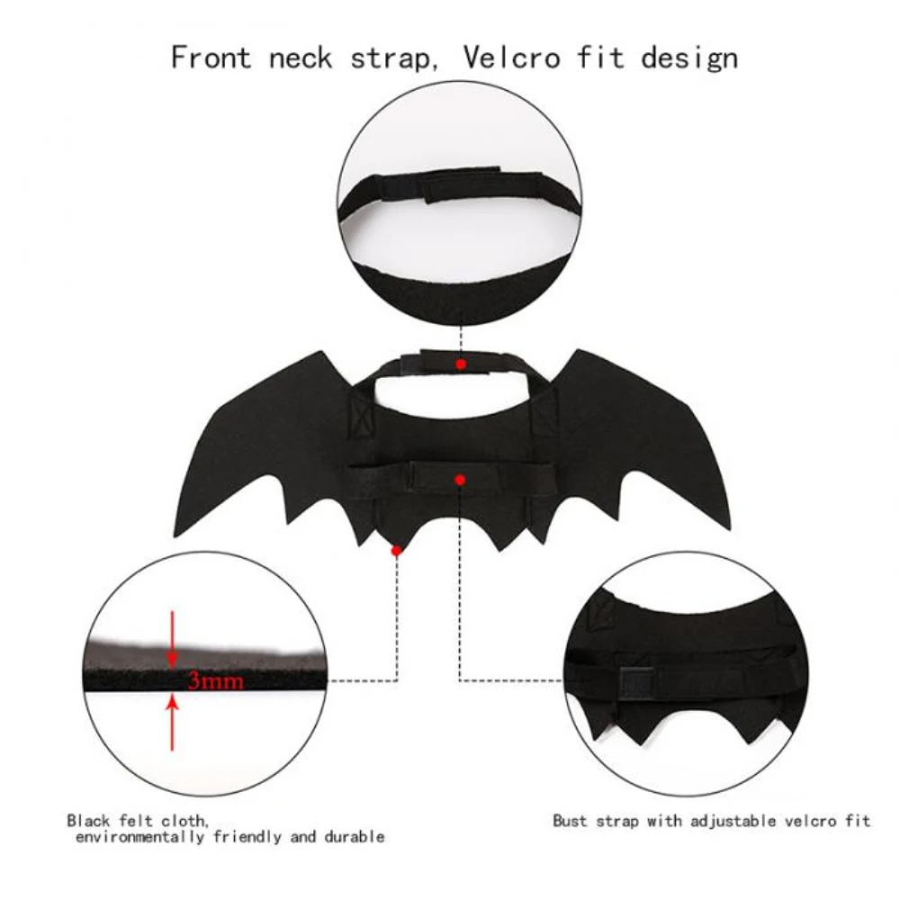 Disfraz de ala de murciélago para mascota, disfraz de alas para perro, gato y Halloween, accesorios para fotos, tocado