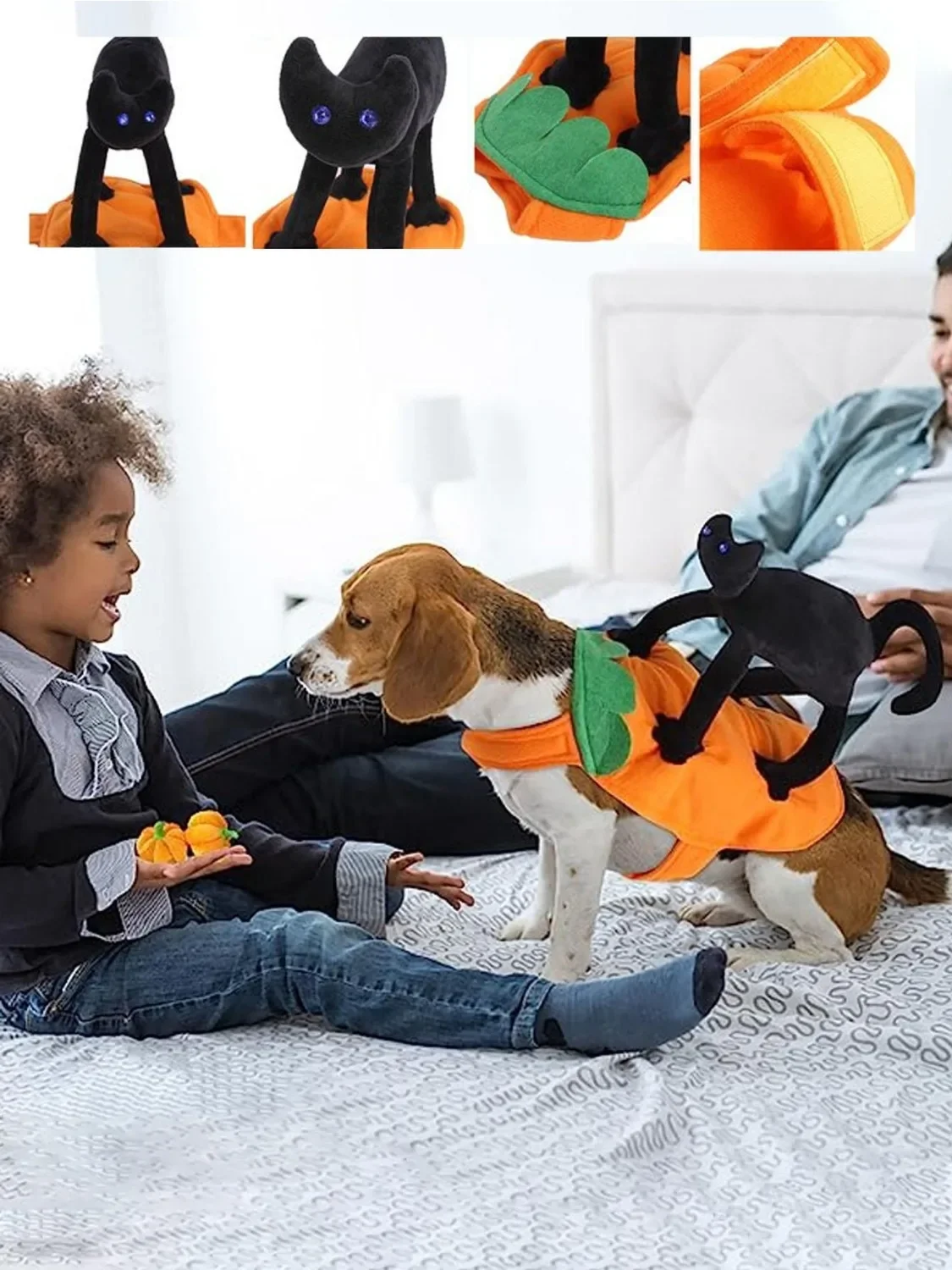 Disfraz de calabaza para mascotas, ropa de fiesta de Halloween para perros pequeños y grandes, Gato Negro
