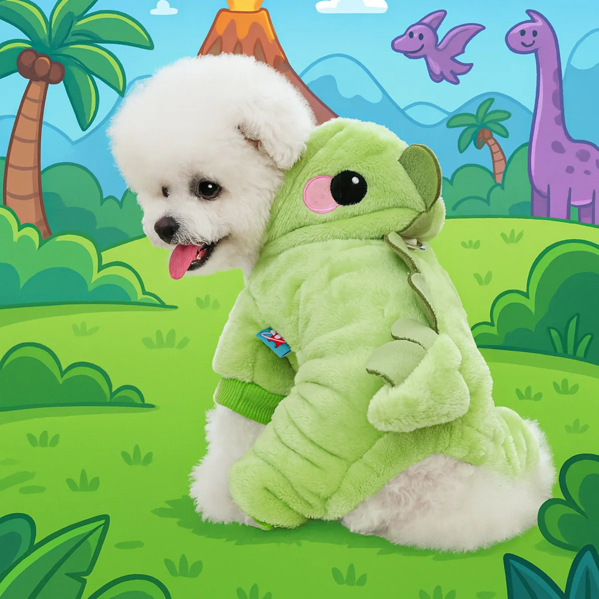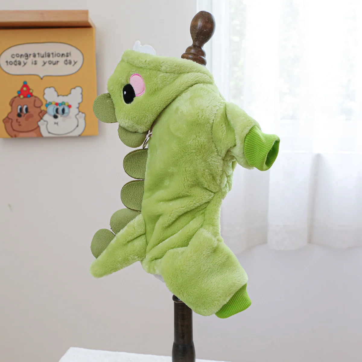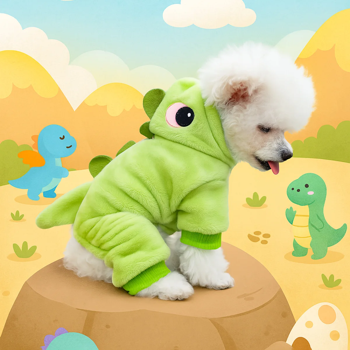 Disfraz de dinosaurio de Halloween para perros pequeños, ropa gruesa para perros de 4 patas para invierno y otoño, cálida y cómoda para perros pequeños