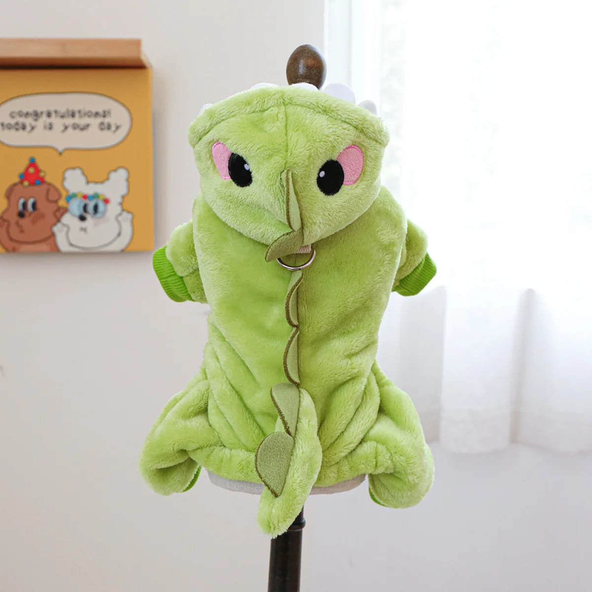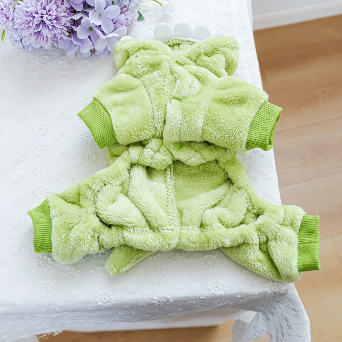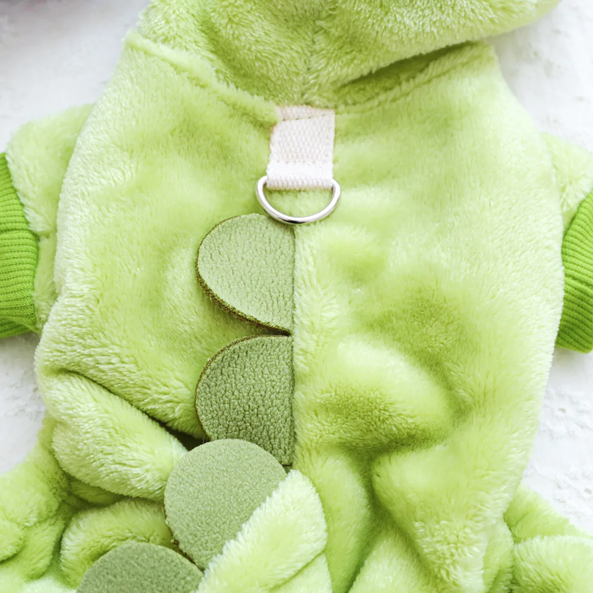Disfraz de dinosaurio de Halloween para perros pequeños, ropa gruesa para perros de 4 patas para invierno y otoño, cálida y cómoda para perros pequeños