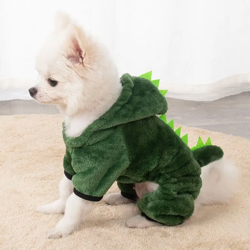 Disfraz de dinosaurio, traje térmico para perros pequeños: mono cálido de 4 patas con capucha para mascotas, ropa de invierno bonita y acogedora para mascotas