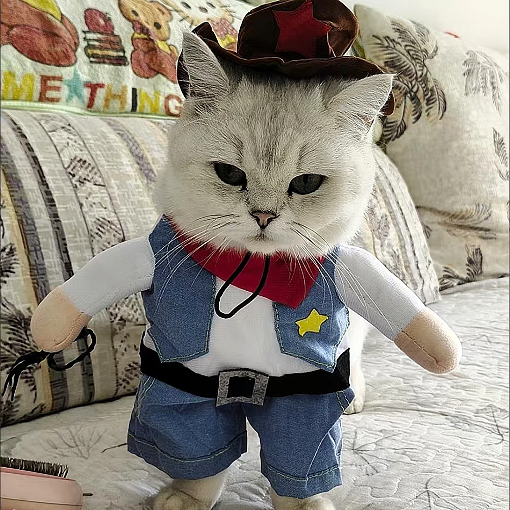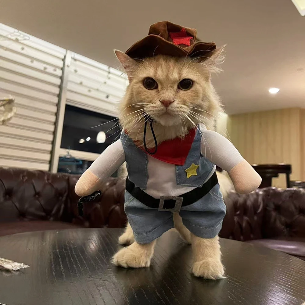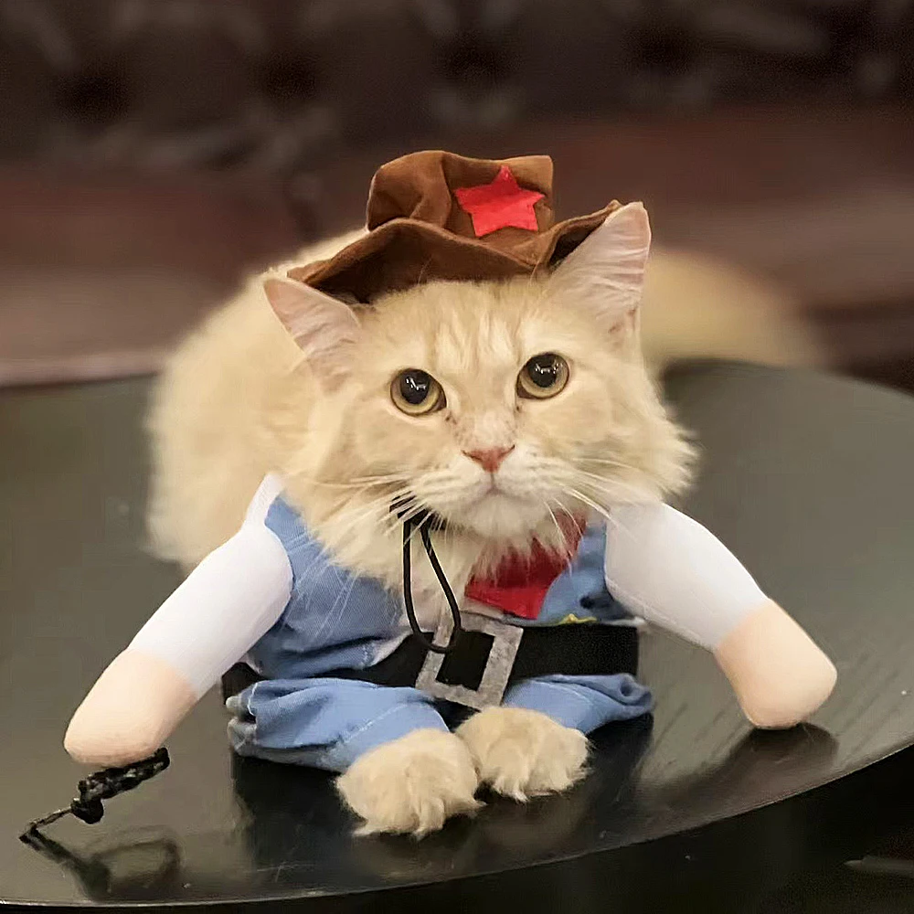 Disfraz de gato, ropa divertida para Halloween, Cosplay, vaquero, trajes para mascotas para perros pequeños y medianos, ropa creativa novedosa para fiesta de gatito