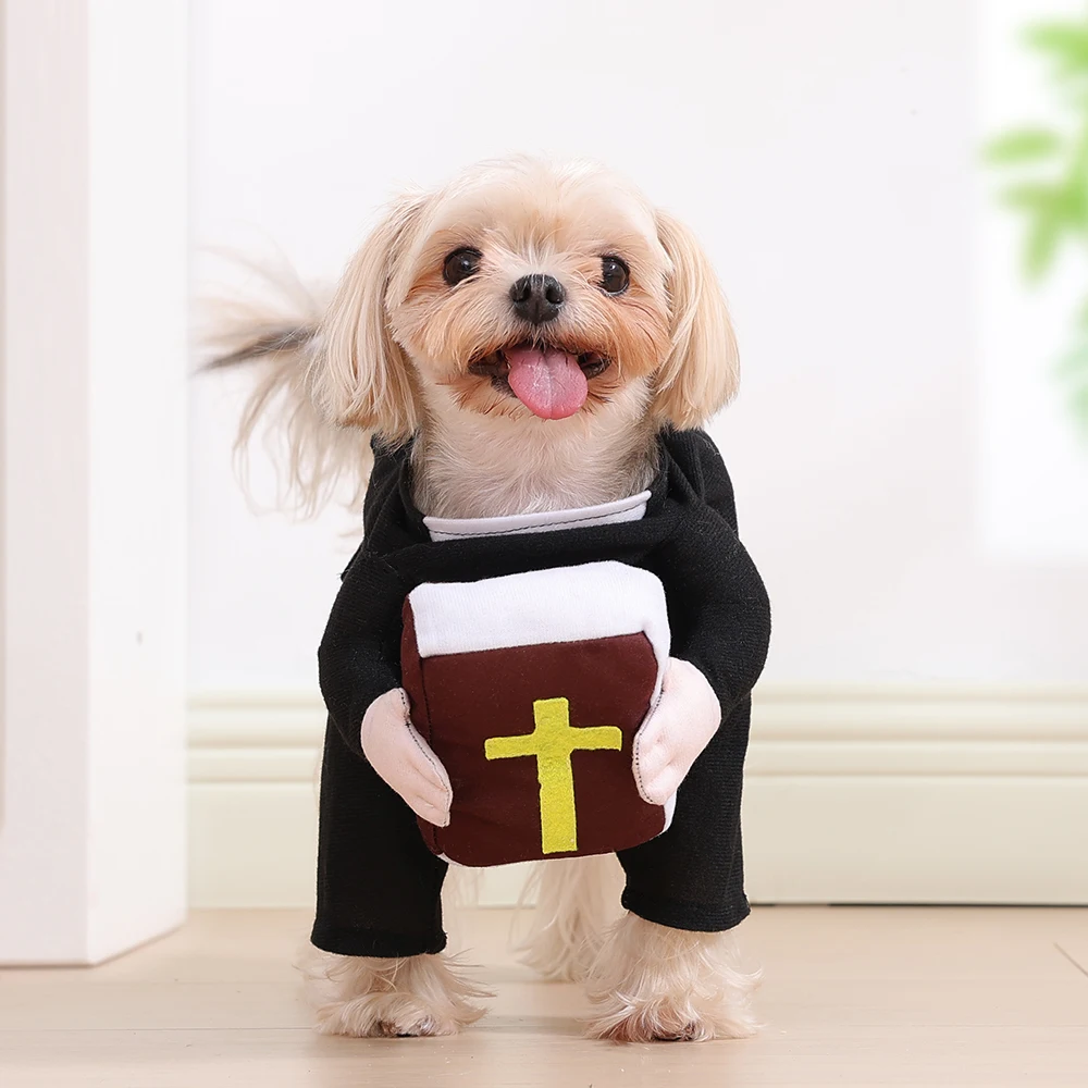 Disfraz de gatos de Halloween, ropa de Cosplay con cruz de Jesús para perros pequeños, medianos y grandes, trajes de gato con ropa de vestir navideña bíblica