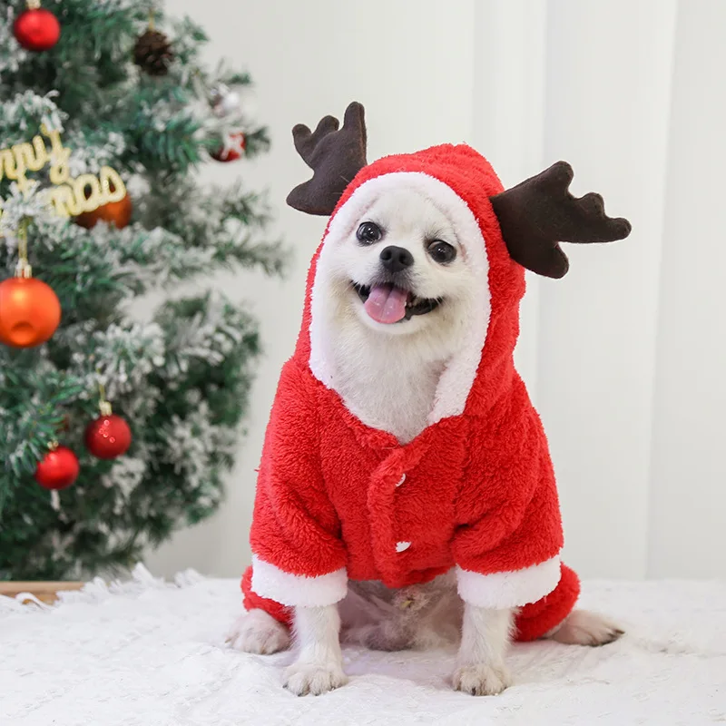 Disfraz de Halloween y Navidad para perros y gatos, disfraz de alce para perros pequeños, ropa cálida de invierno para perros y gatos