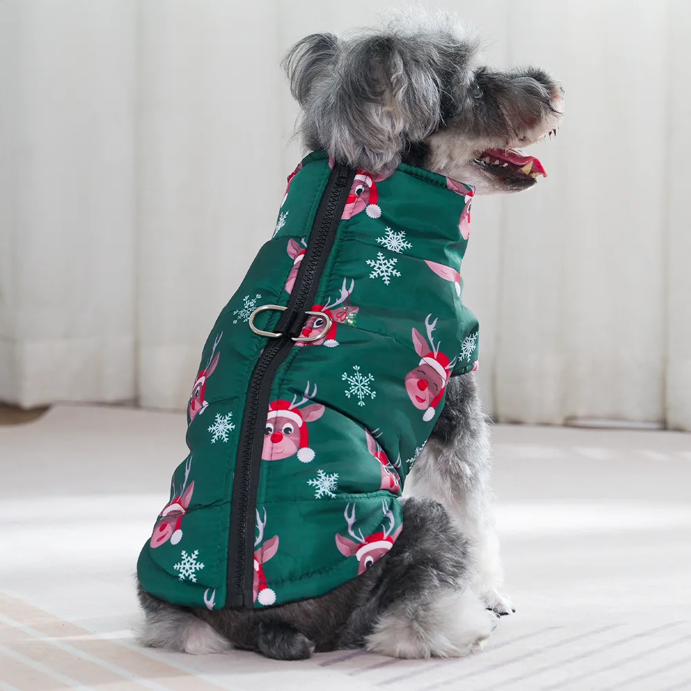 Disfraz de invierno para mascotas, para perros pequeños y medianos, chaqueta para fiesta de Año Nuevo para perros, chaqueta para Navidad con estampado de ciervos, mascotas pequeñas y medianas, bulldog Schnauzer