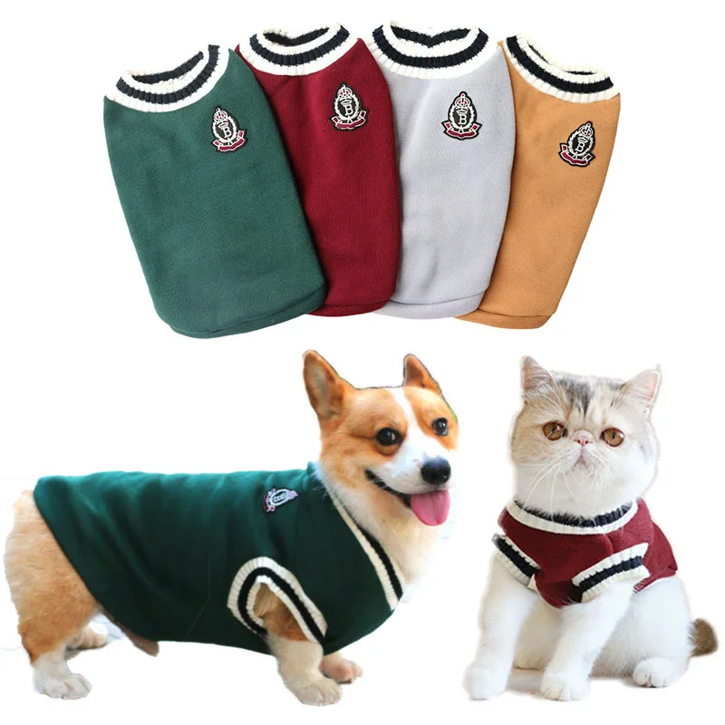 Disfraz liso de gato para mascotas, suéter de Navidad para otoño e invierno, ropa para perros de estilo universitario, chaleco para cachorros, ropa, chaqueta para gatito, trajes