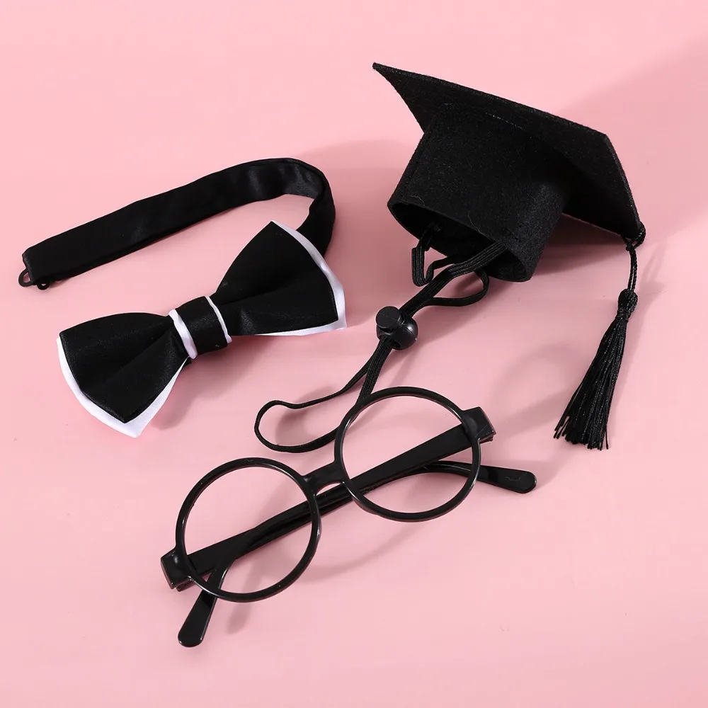 Disfraz de mascota de temporada de graduación de 3 piezas: disfraz de sombrero Phd para gatos/perros, bonito diseño divertido, ideal para fotografía