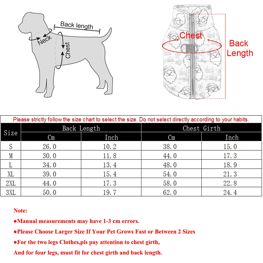 2XL: 등 길이 50cm/(19.7 인치); 가슴 둘레 62cm/(24.4 인치)
