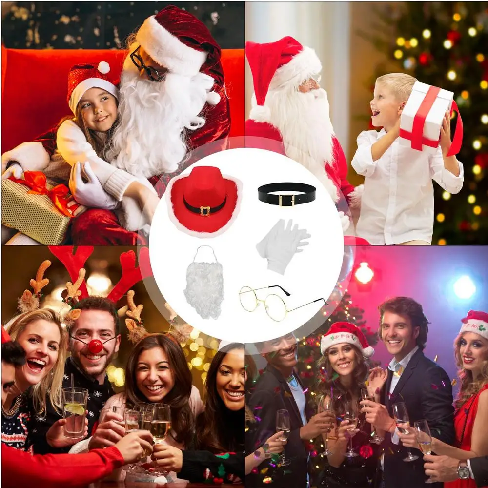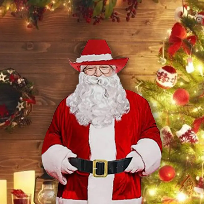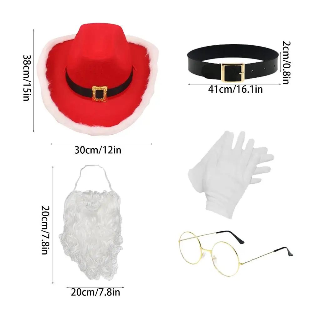 2.Juego completo: Con este juego completo, transfórmate en Papá Noel sin molestar para purgar después de ningún accesorio adicional.El paquete de disfraces incluye un sombrero de vaquero rojo, barba blanca, cinturón, gafas doradas, guantes y todo lo que necesitas para completar tu look festivo.
